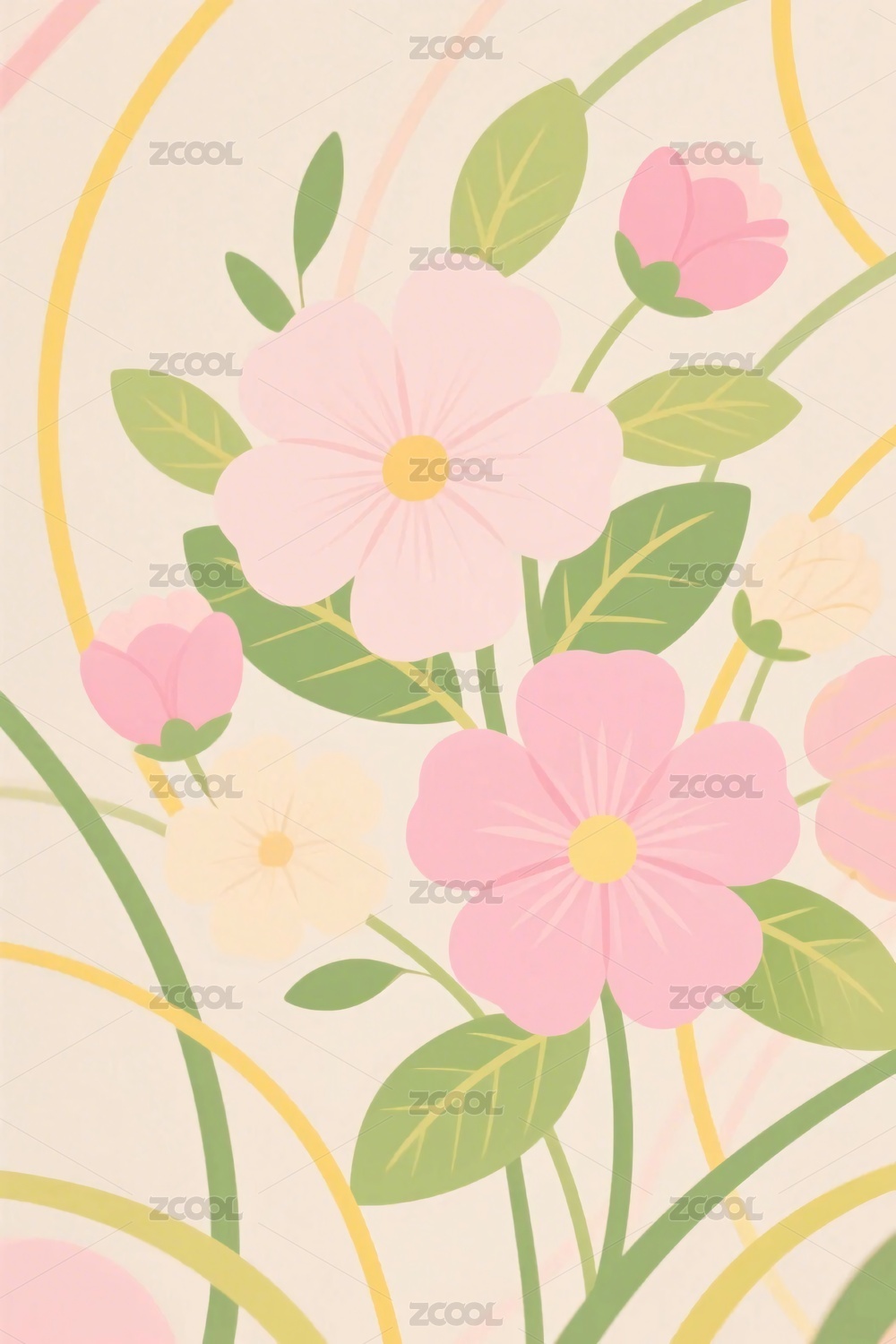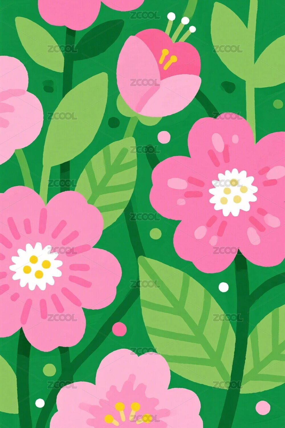 清新插画粉色花朵图案