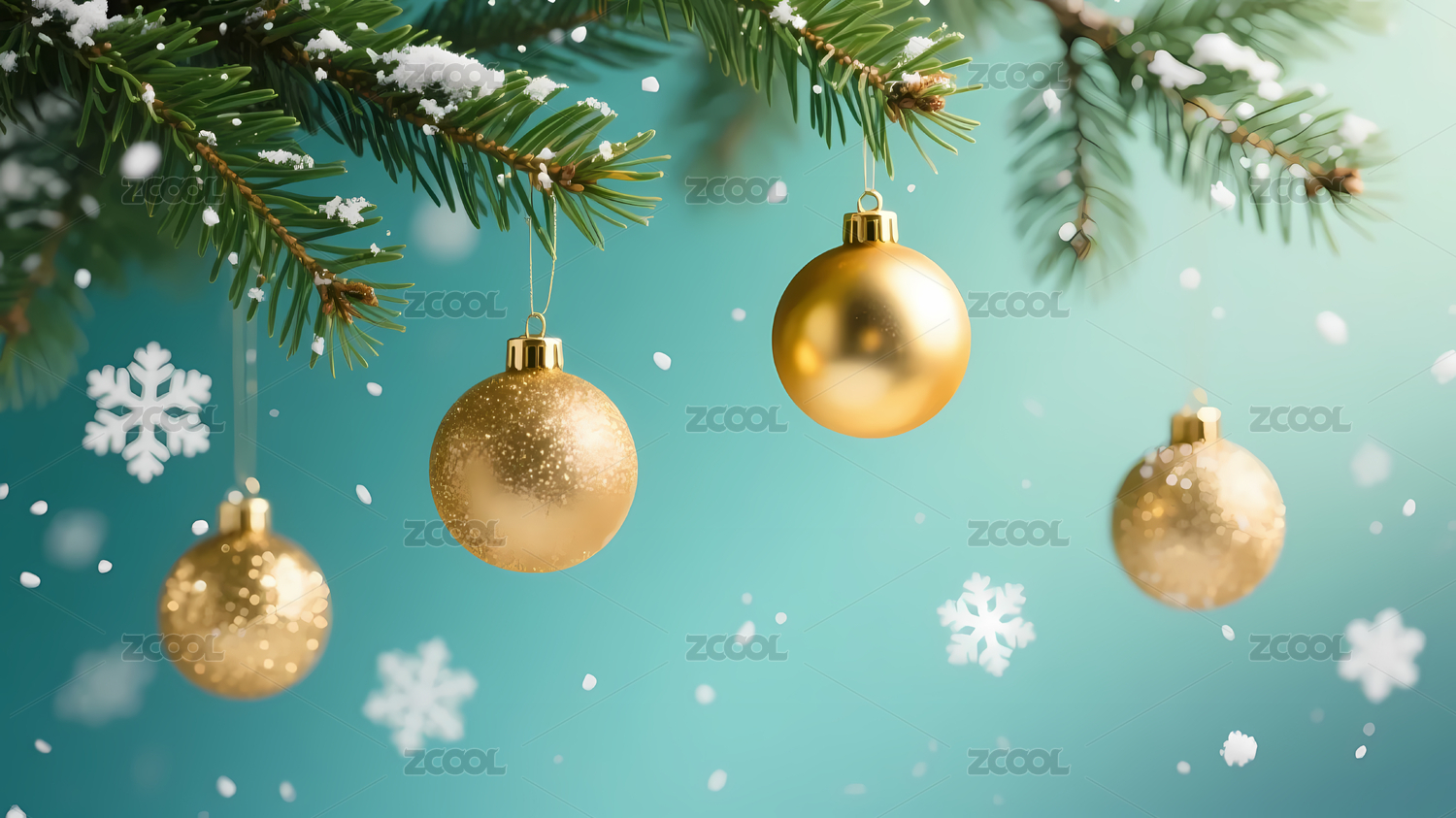 金色,背景,蓝色,主体,圣诞球,松树,枝条,渐变,光斑,装饰