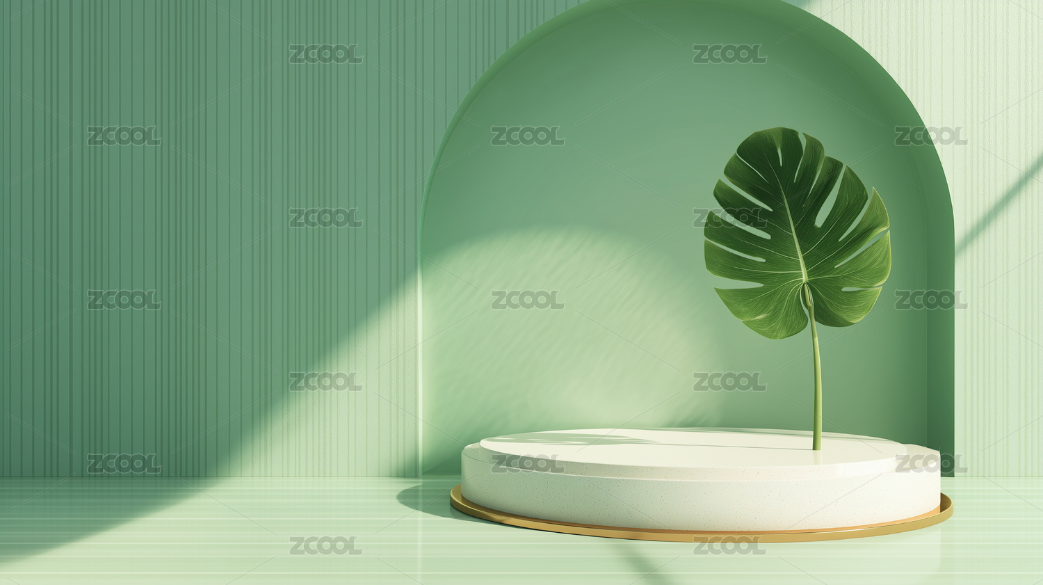 3D绿色植物电商产品展台极简主义创意背景