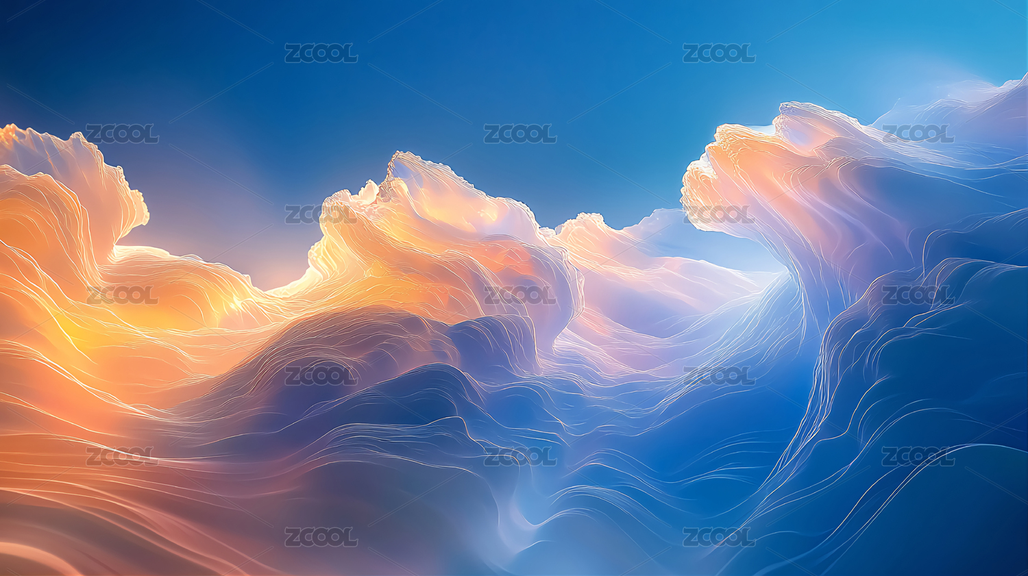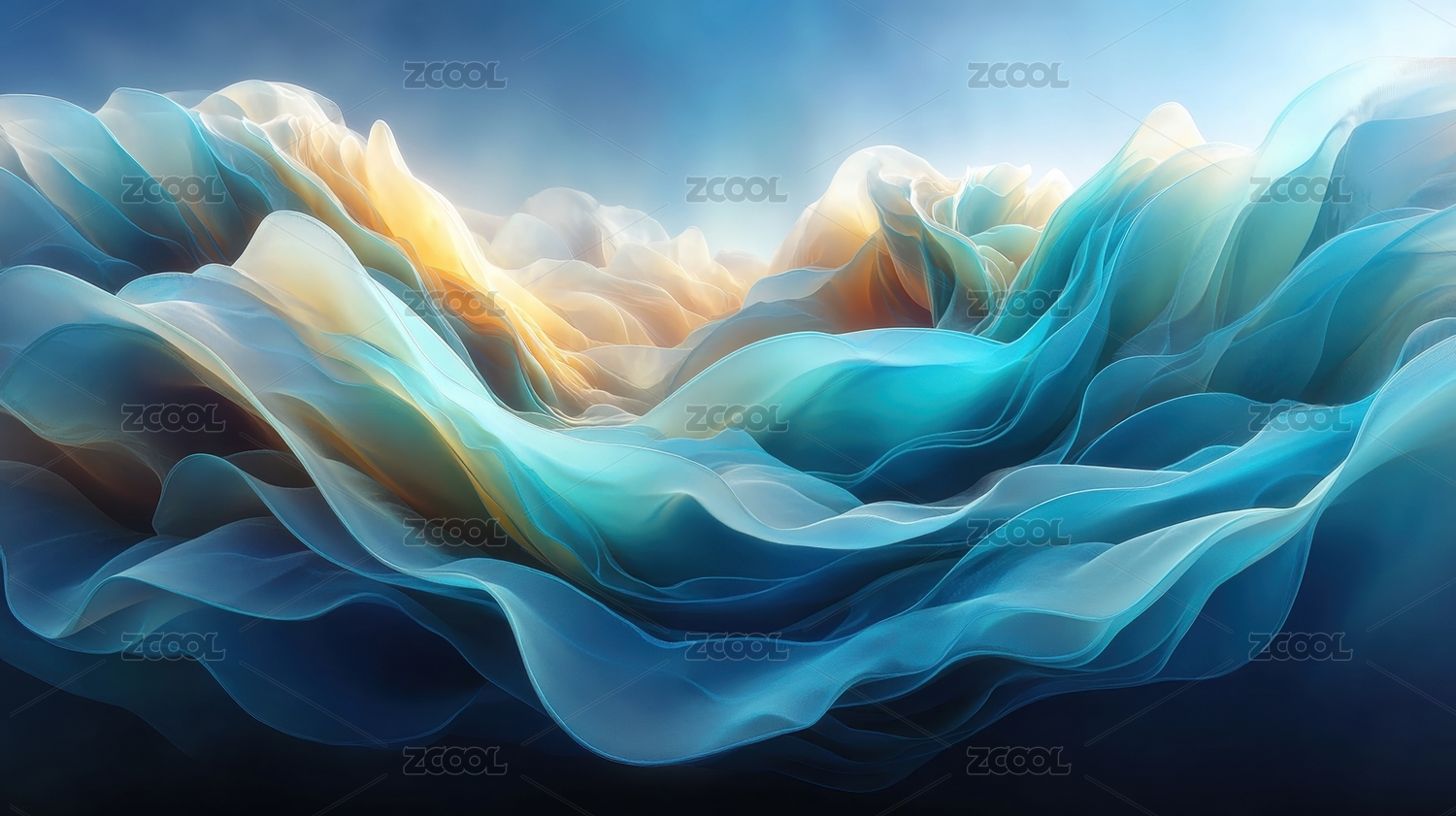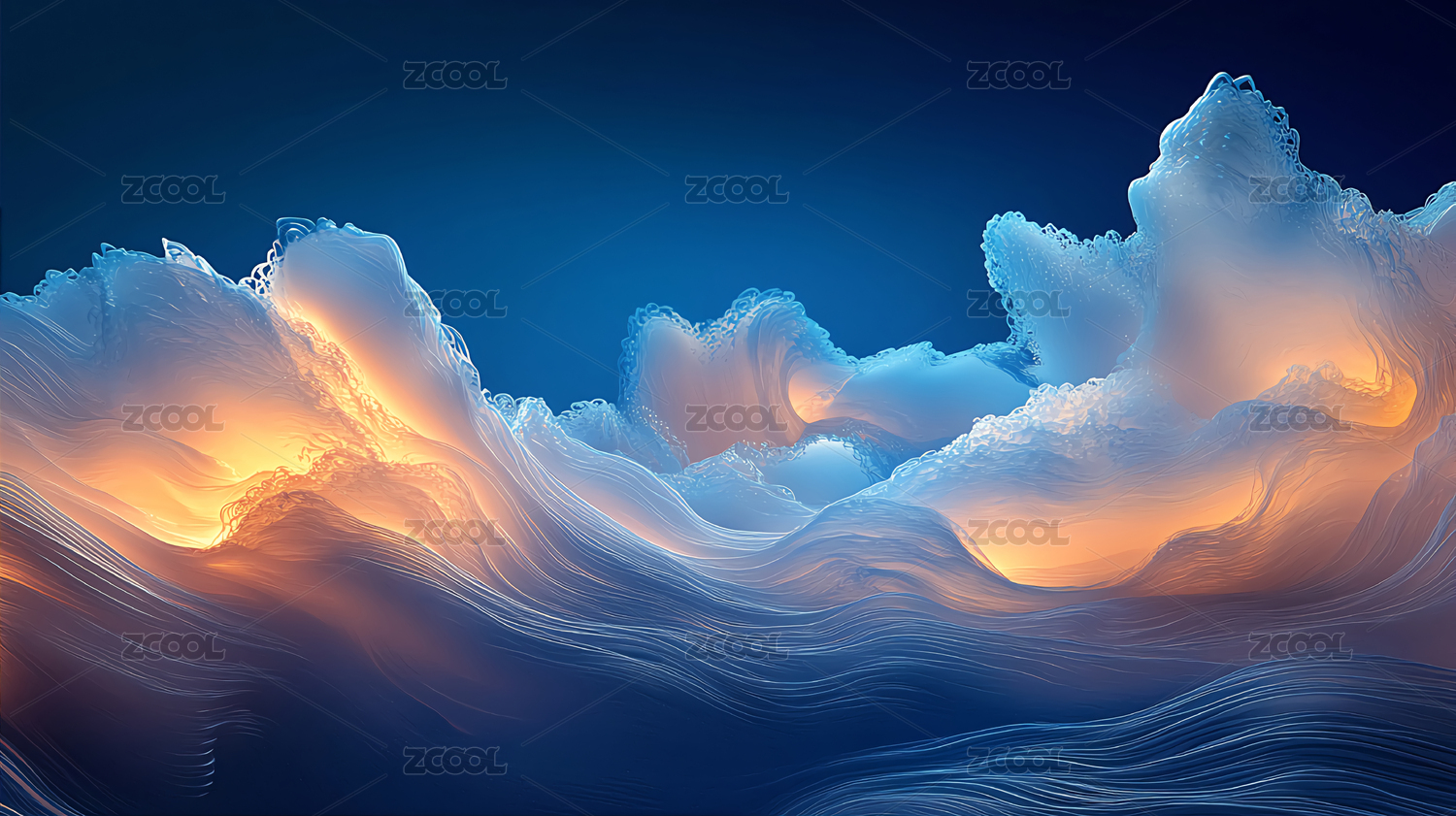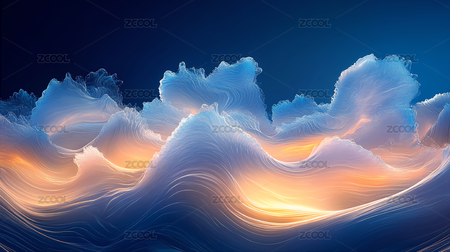 梦幻,唯美,光影,金色,光芒,蓝色,背景,白云,海浪,抽象