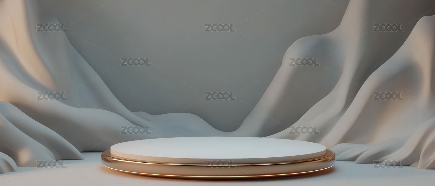 白色波浪背景与圆柱形平台