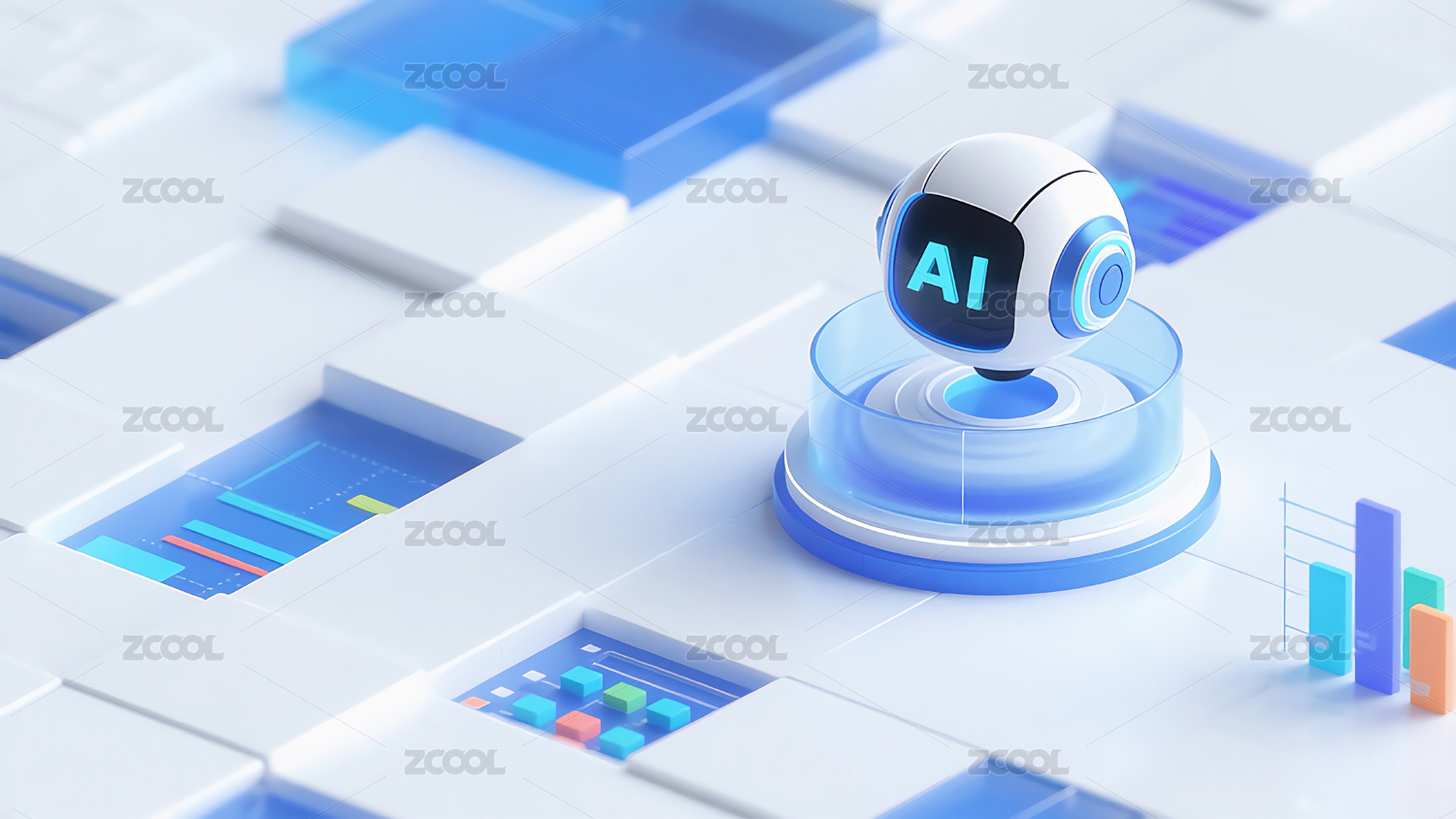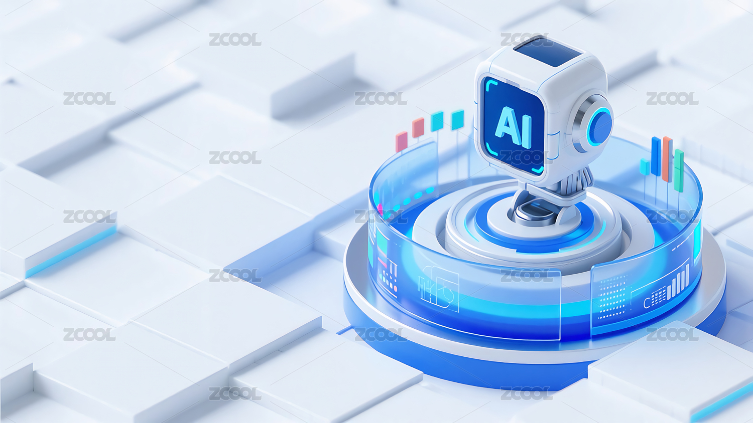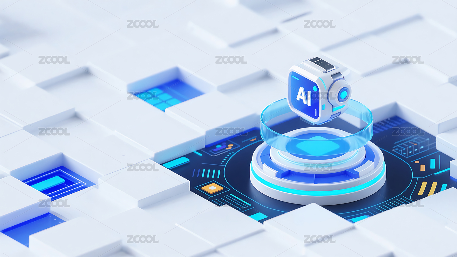 AI,芯片,机器人,图标,背景,电路板,抽象,几何体,科技,蓝色