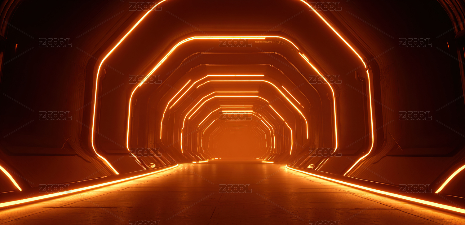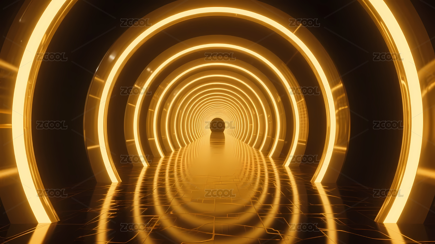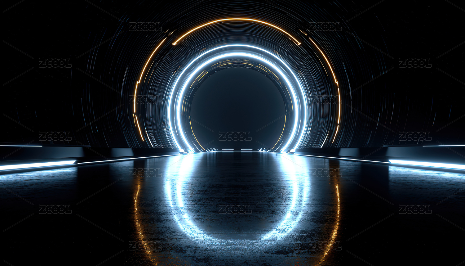 背景,深色,科技,黄色,未来,光线,圆形,霓虹灯,隧道,反射