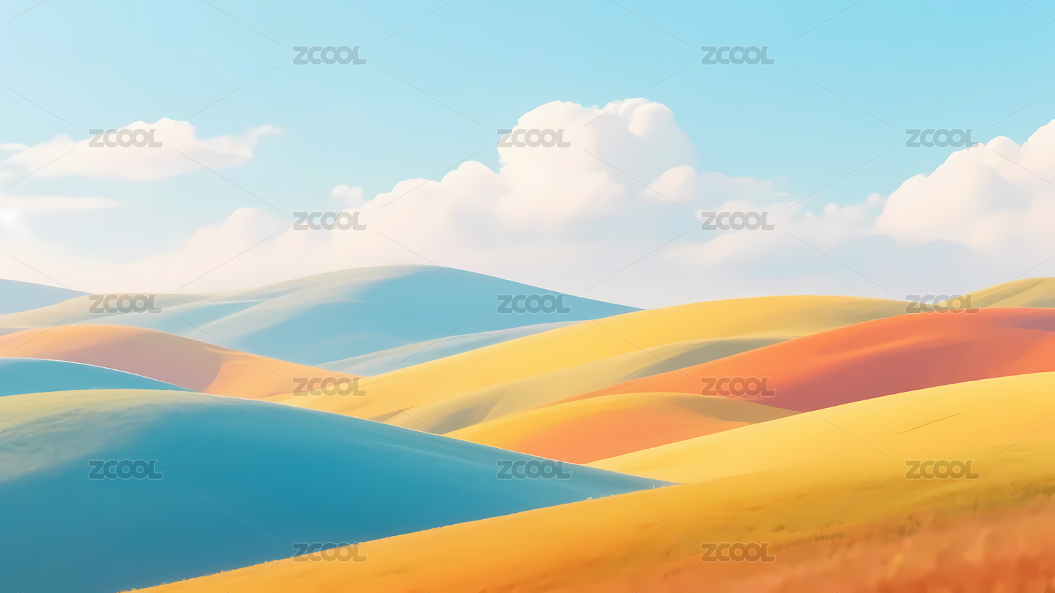 斑斓渐变山丘蓝天云