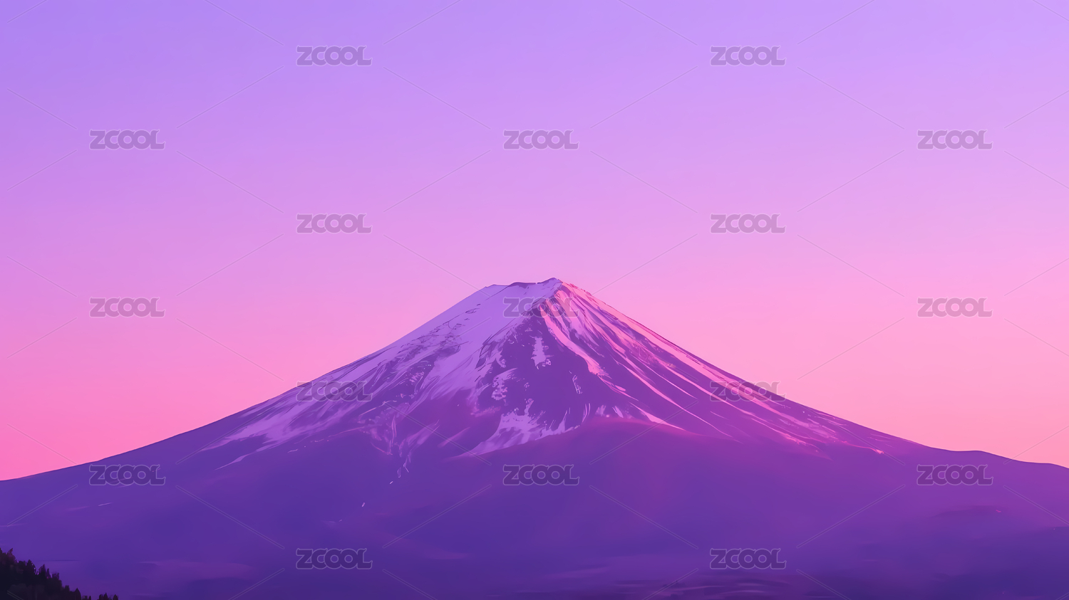 蓝色,背景,主体,粉红,自然,天空,富士山,雪峰,山体,景色