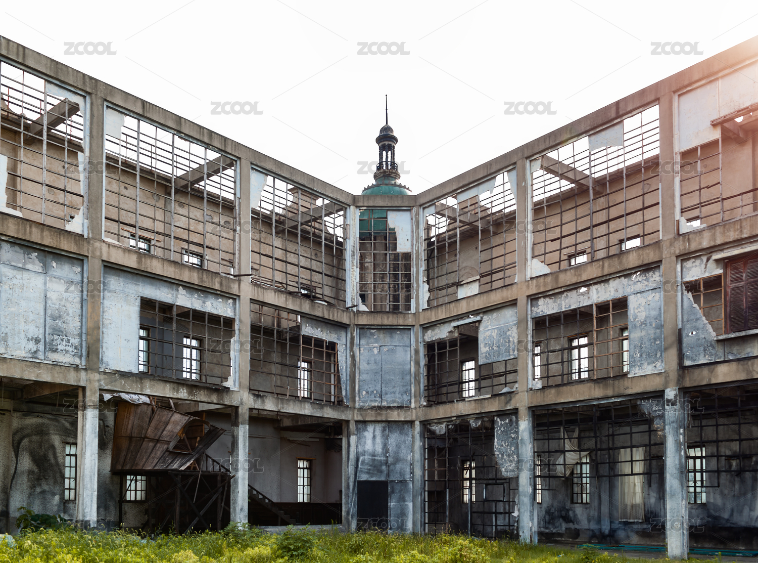 中国广州番禺紫妮糖厂厂区旧址的破旧厂房