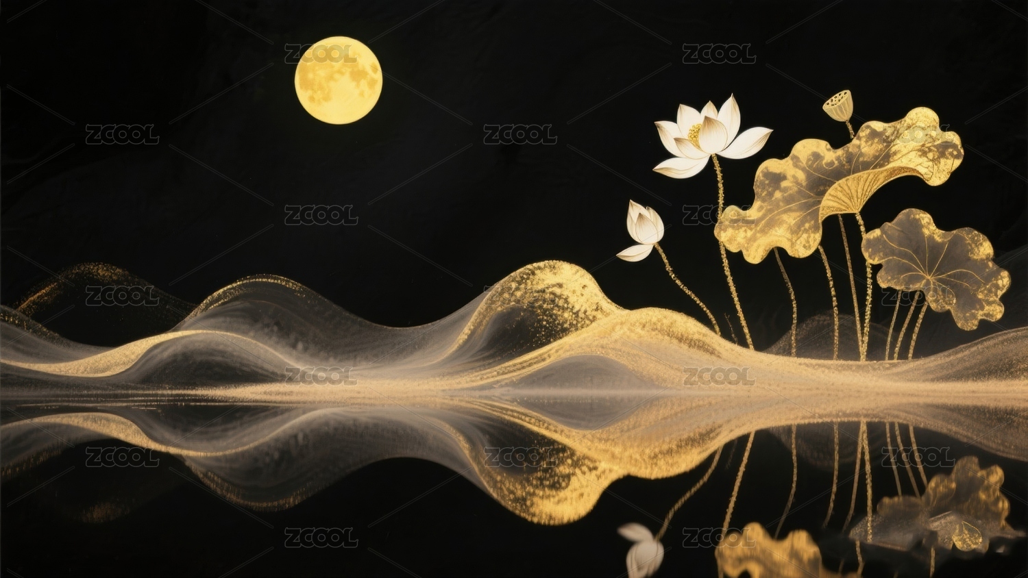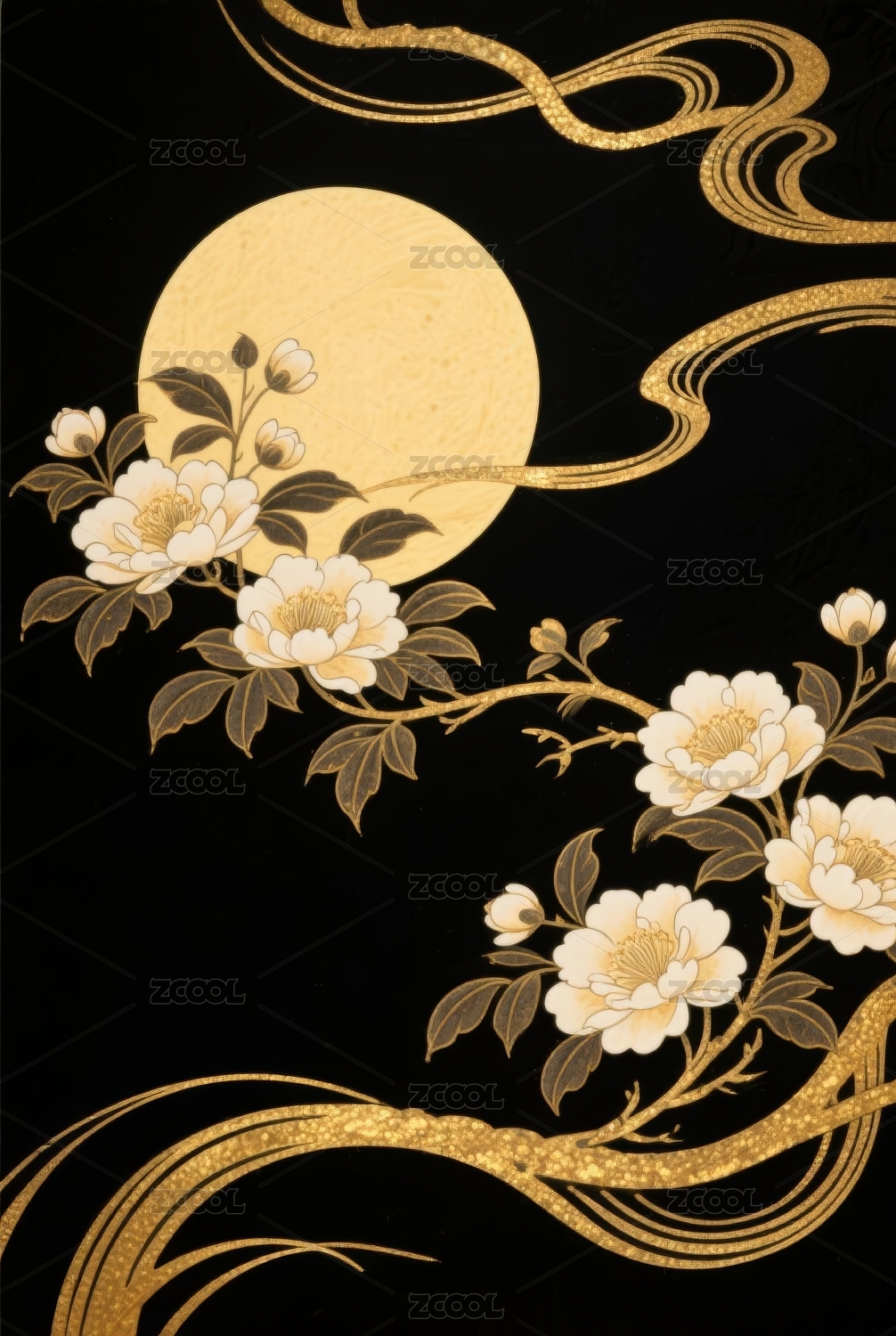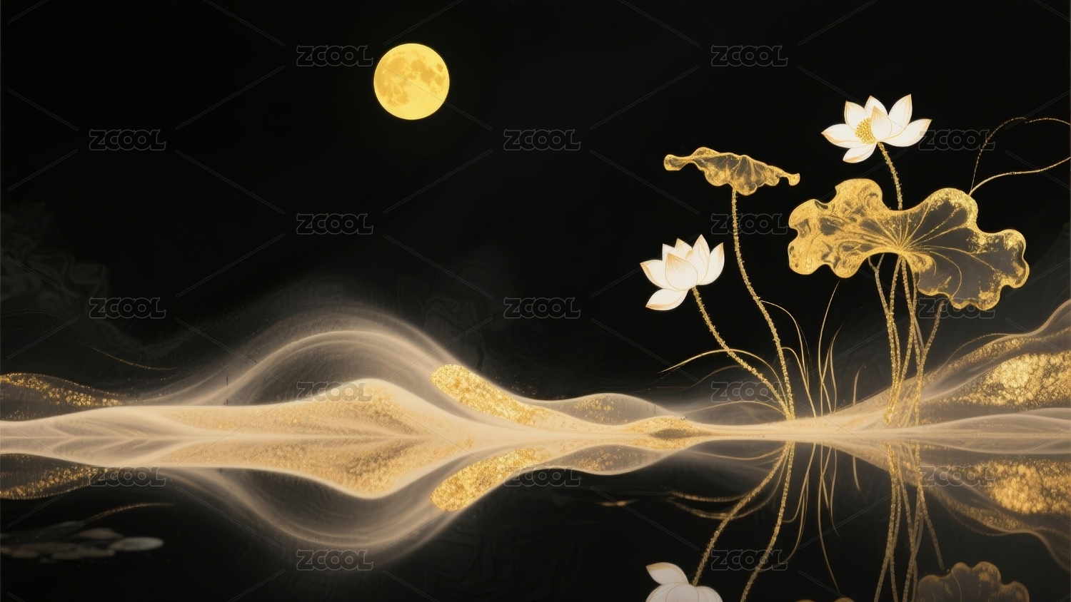 光影,背景,传统,艺术,曲线,梦幻,月亮,花朵,云雾,金色