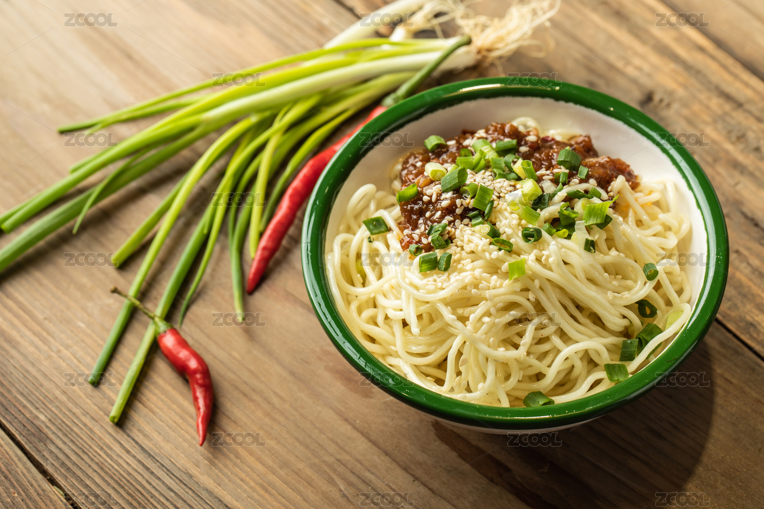 木底上放着一盘凉面