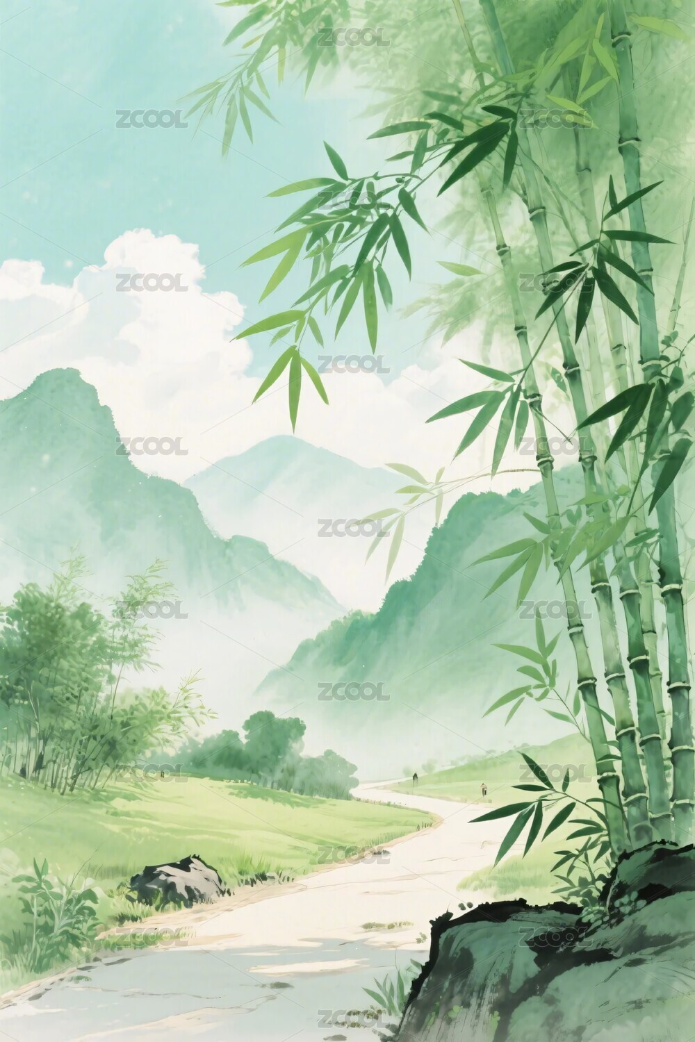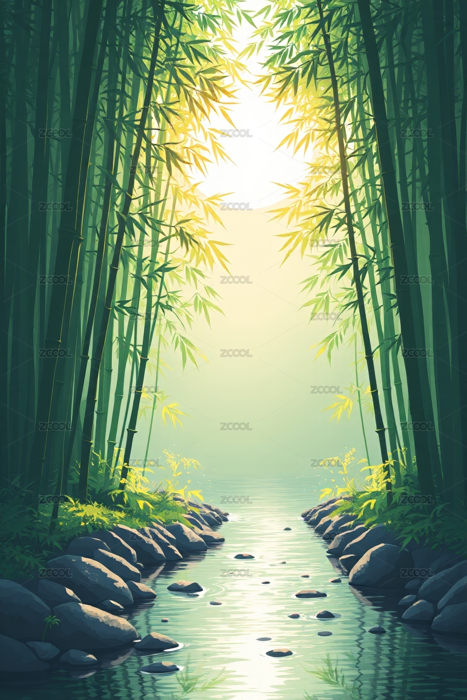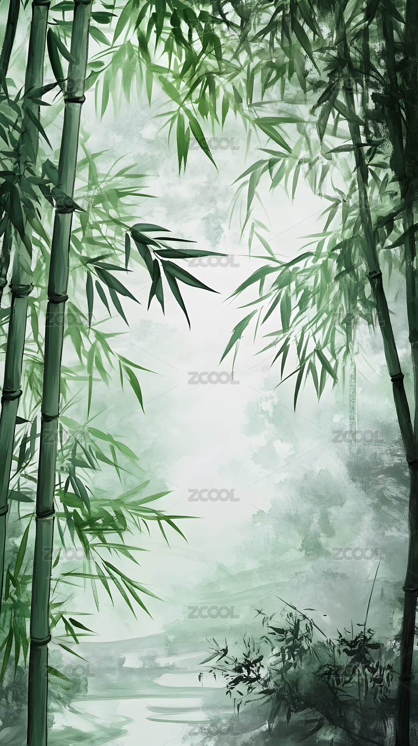 环境,自然,传统,竹林,湖面,小舟,静谧,山水,薄雾,日出