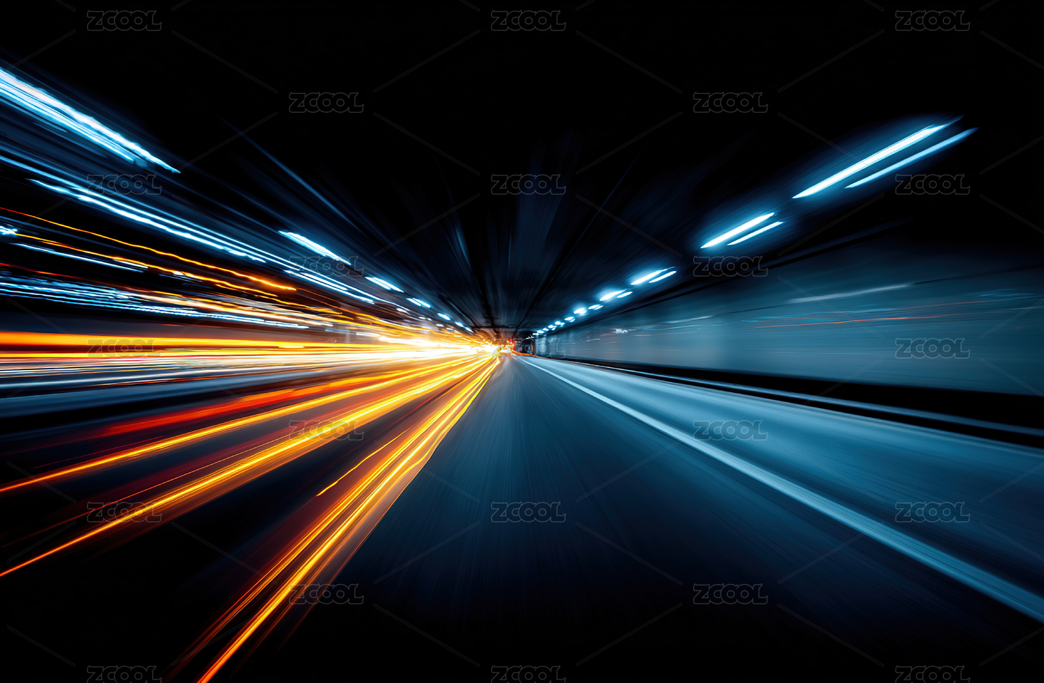 高速隧道中的光影流动