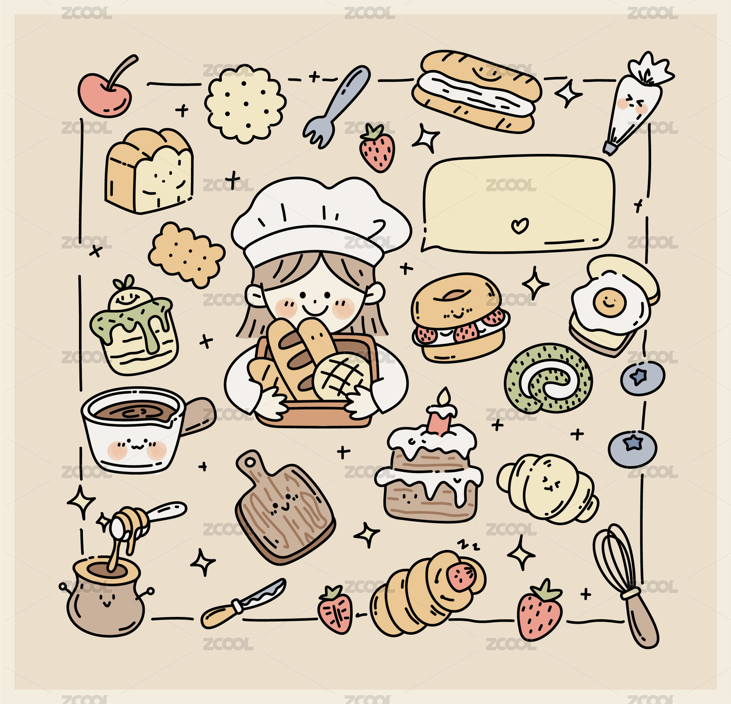 美味食品美食餐饮图形描边涂鸦扁平插画