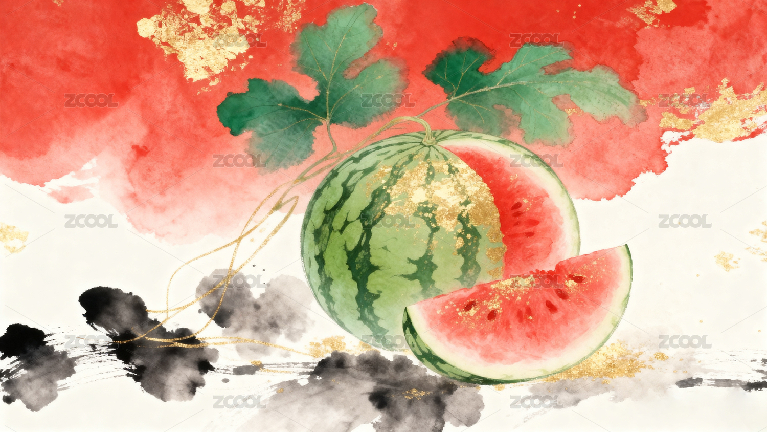 中国风水墨西瓜