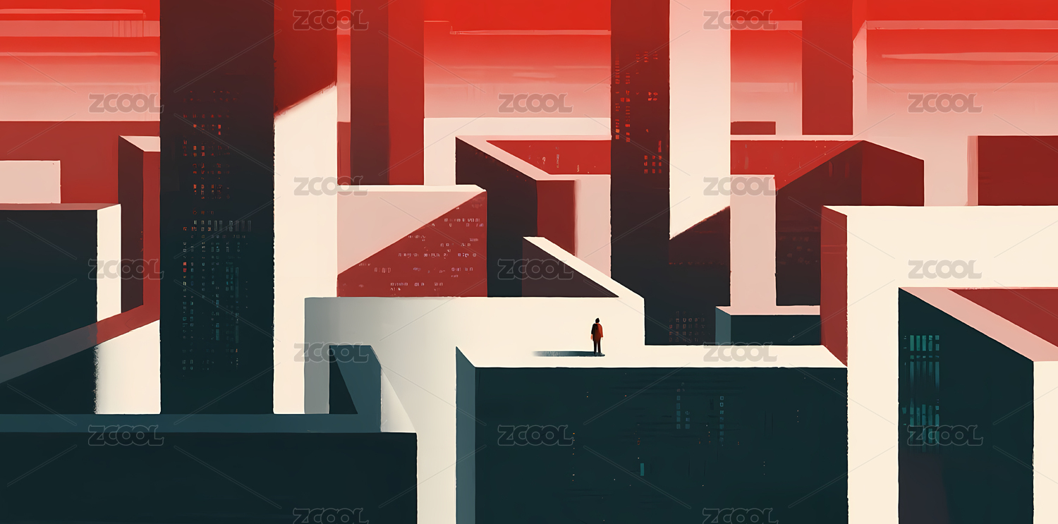 城市迷宫中的孤独身影