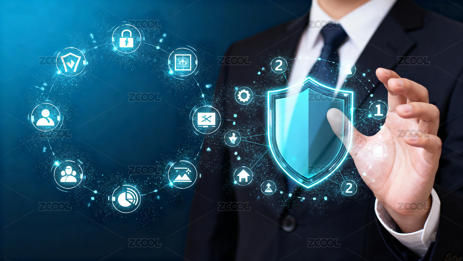商务人士与科技盾牌图像