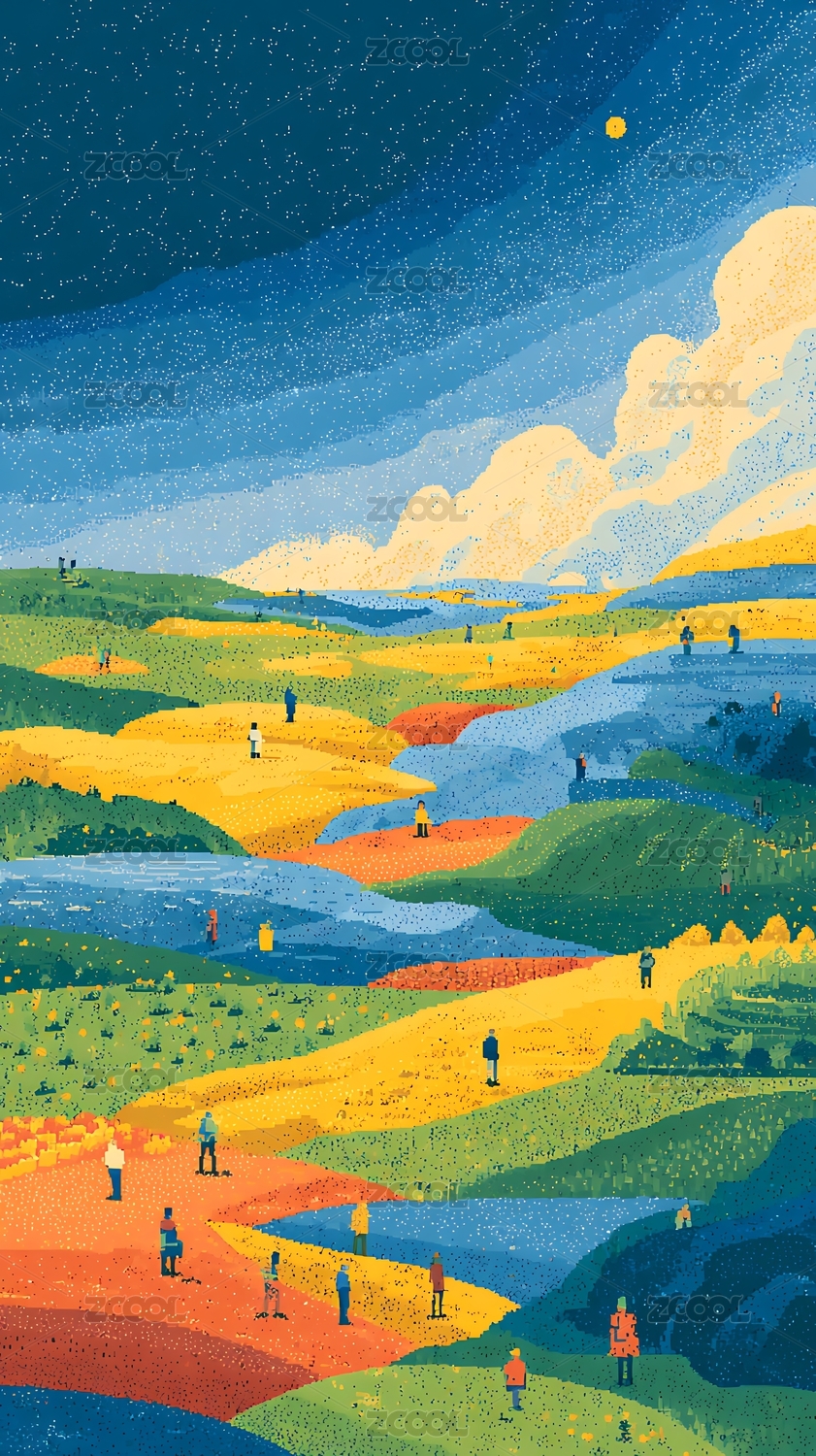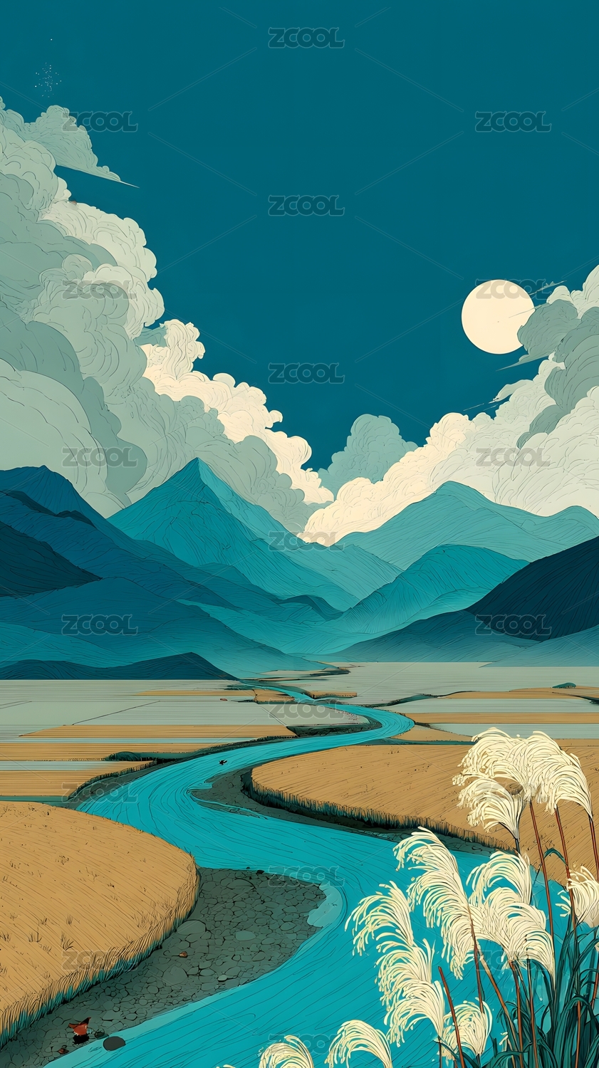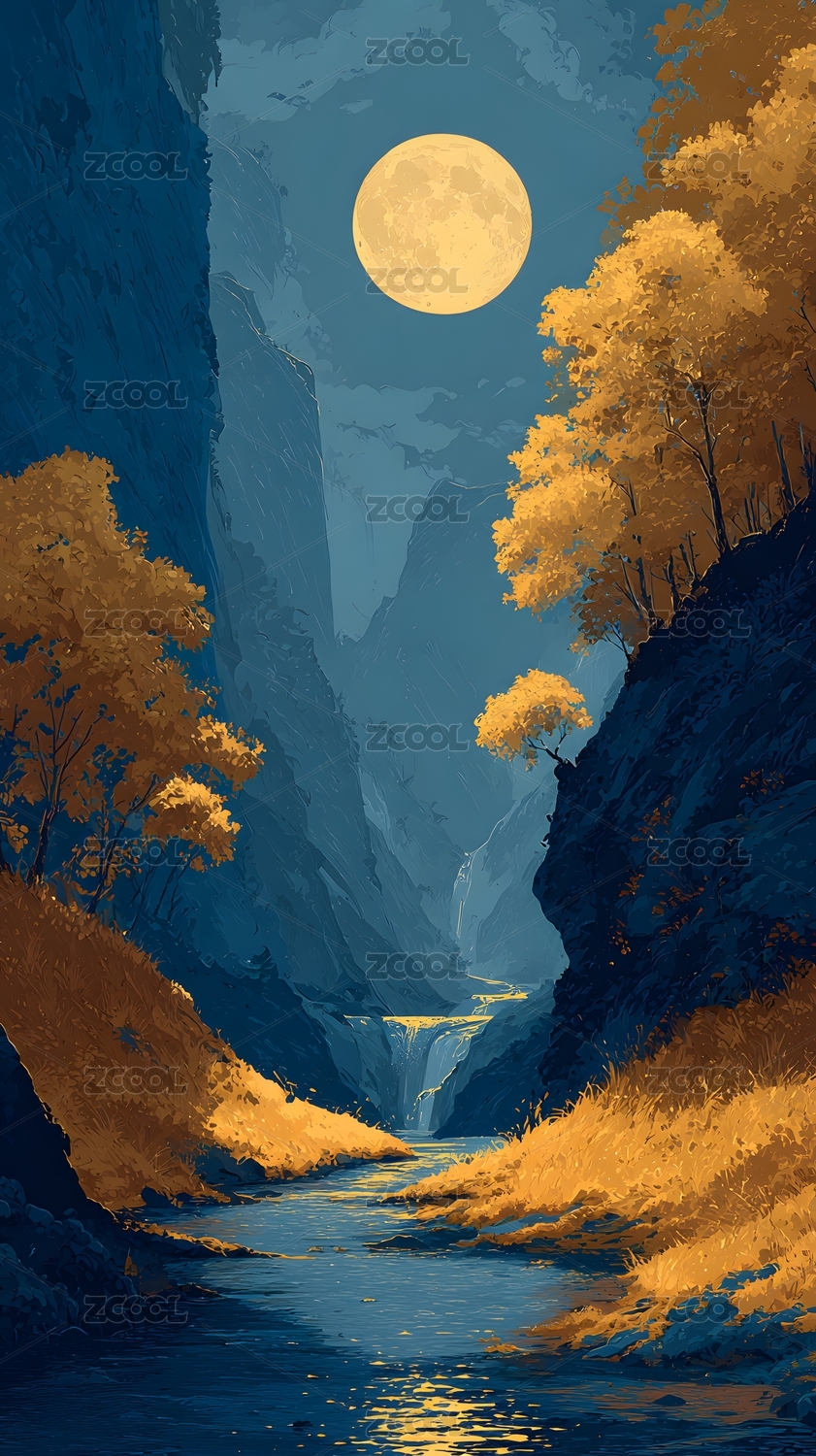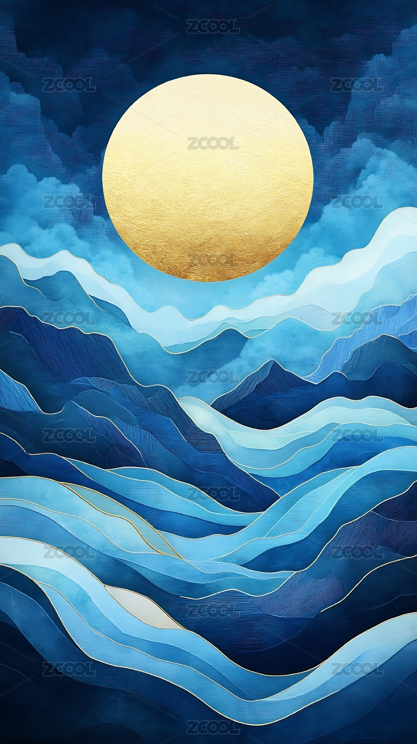 抽象,风景,艺术,意境,绘画,唯美,写意,蓝色,背景,金黄