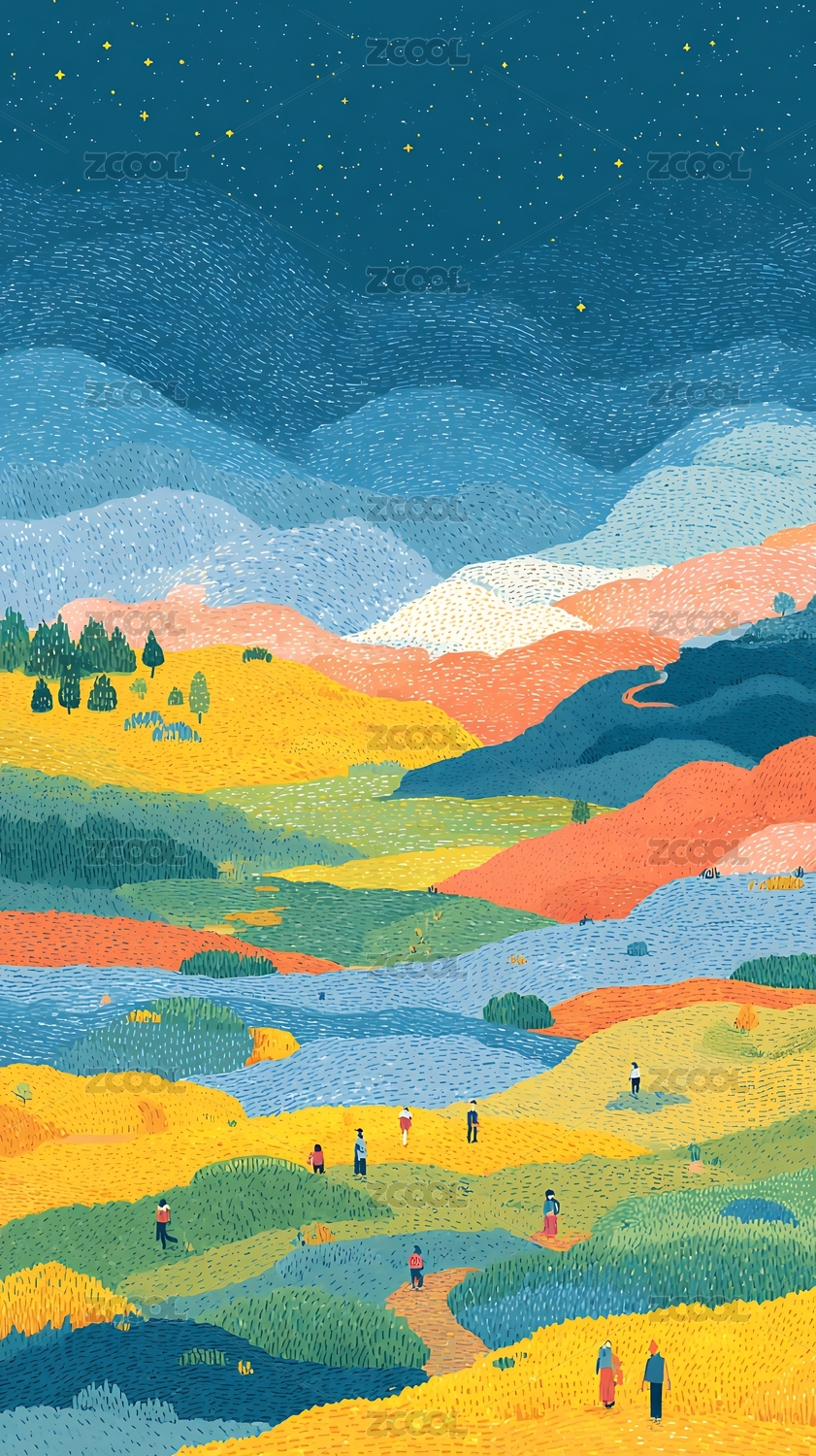 手绘唯美的抽象艺术感夜晚天空风景插画
