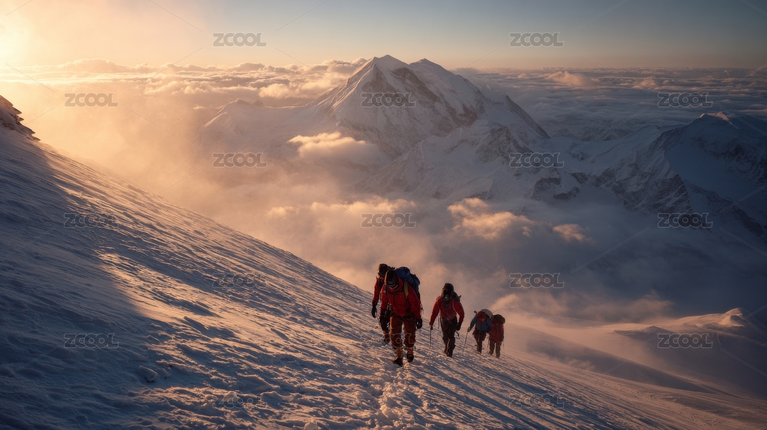 登山,雪山,攀登,探险,团队,挑战,征服,云海,日出,山峰