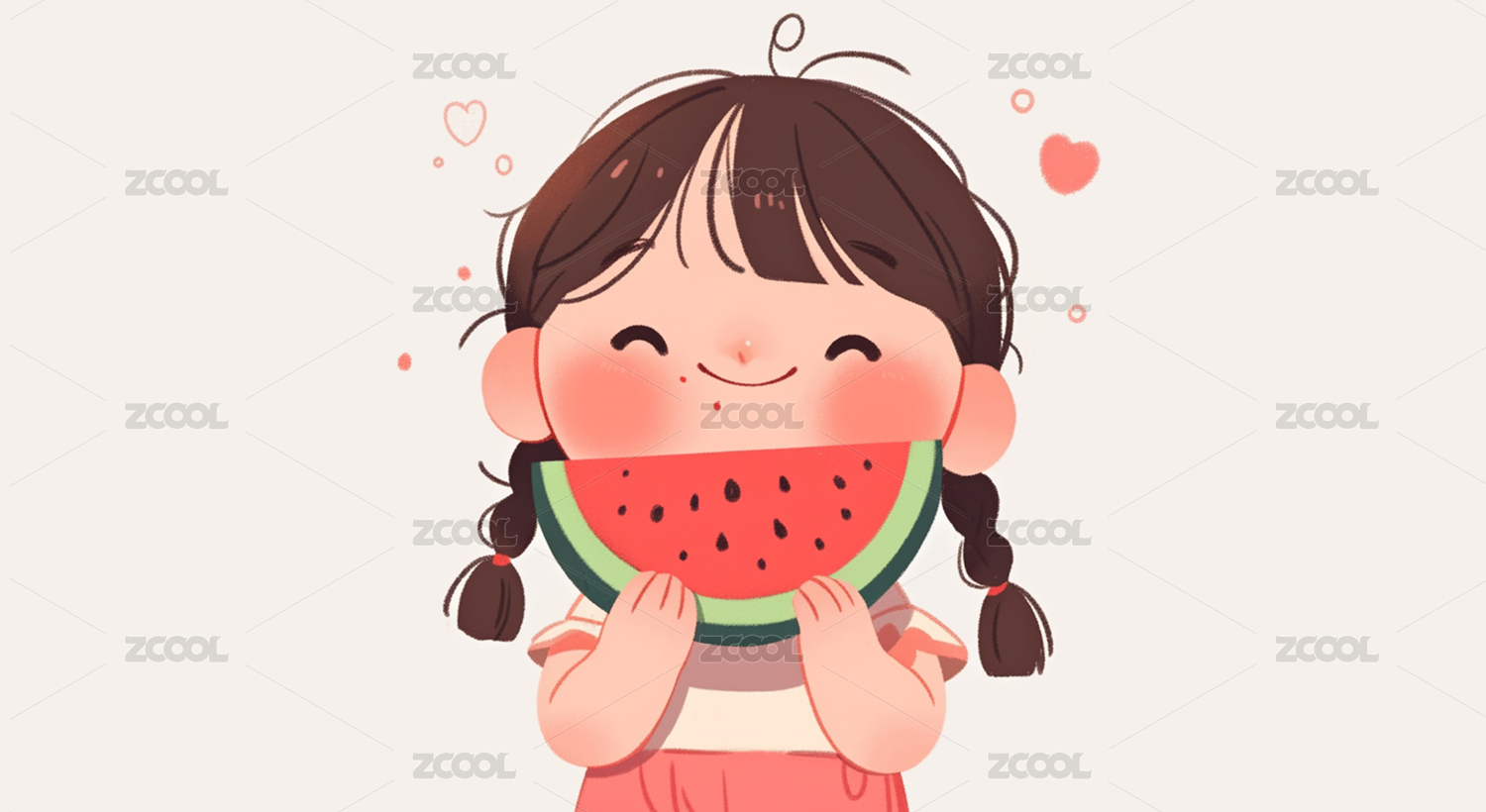 立夏节气人物插画,女孩夏季吃西瓜解暑降温
