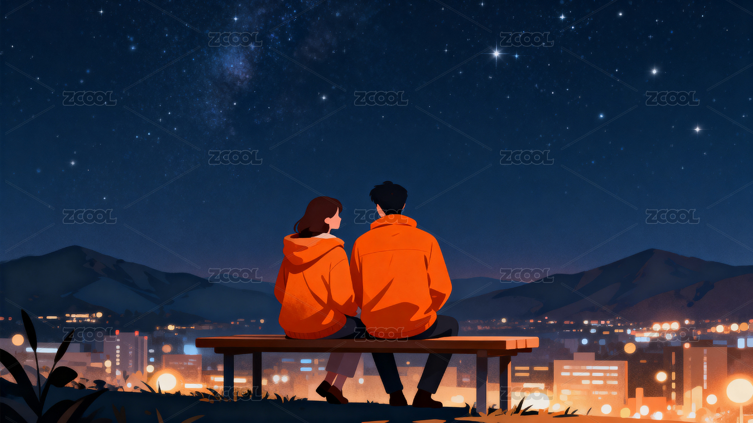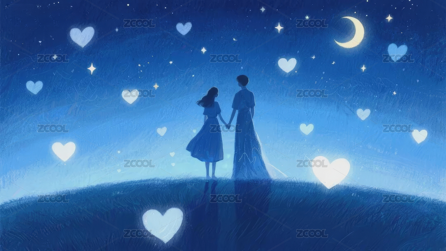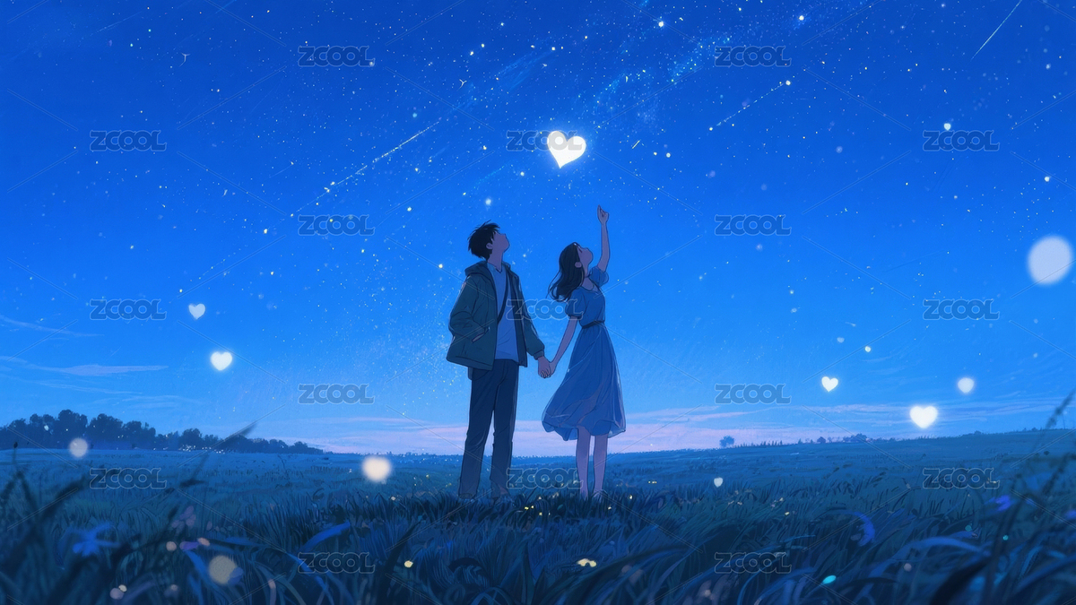 浪漫星空下的牵手主题