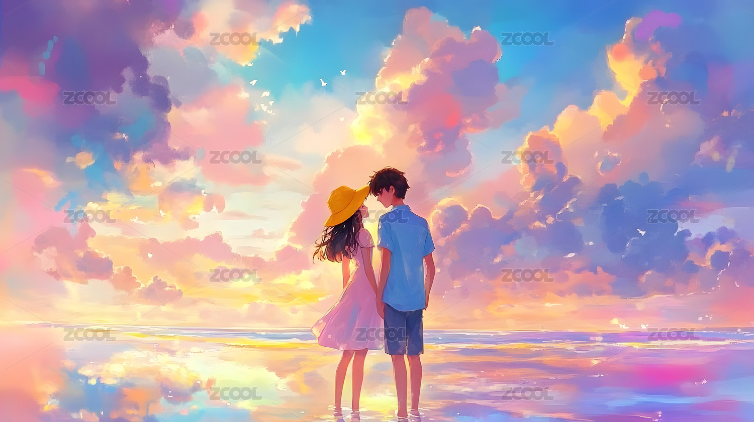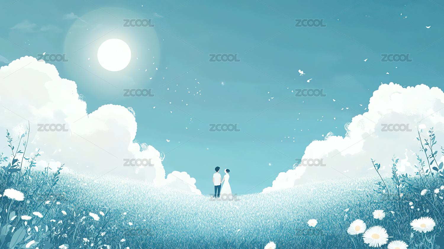 情侣动漫手绘插画