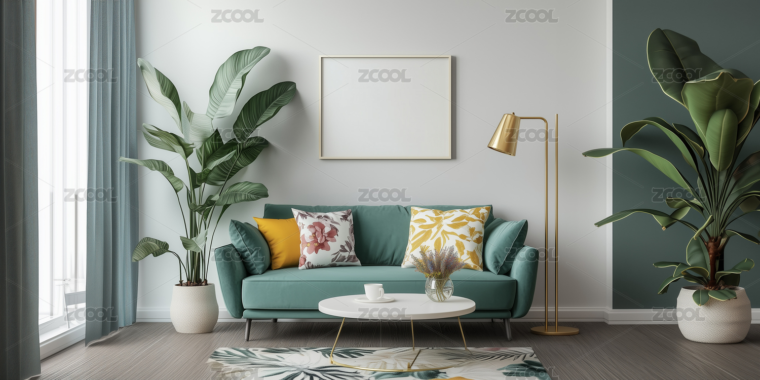 客厅,沙发,绿色,北欧,墙面,绿植,地板,地毯,极简,家居