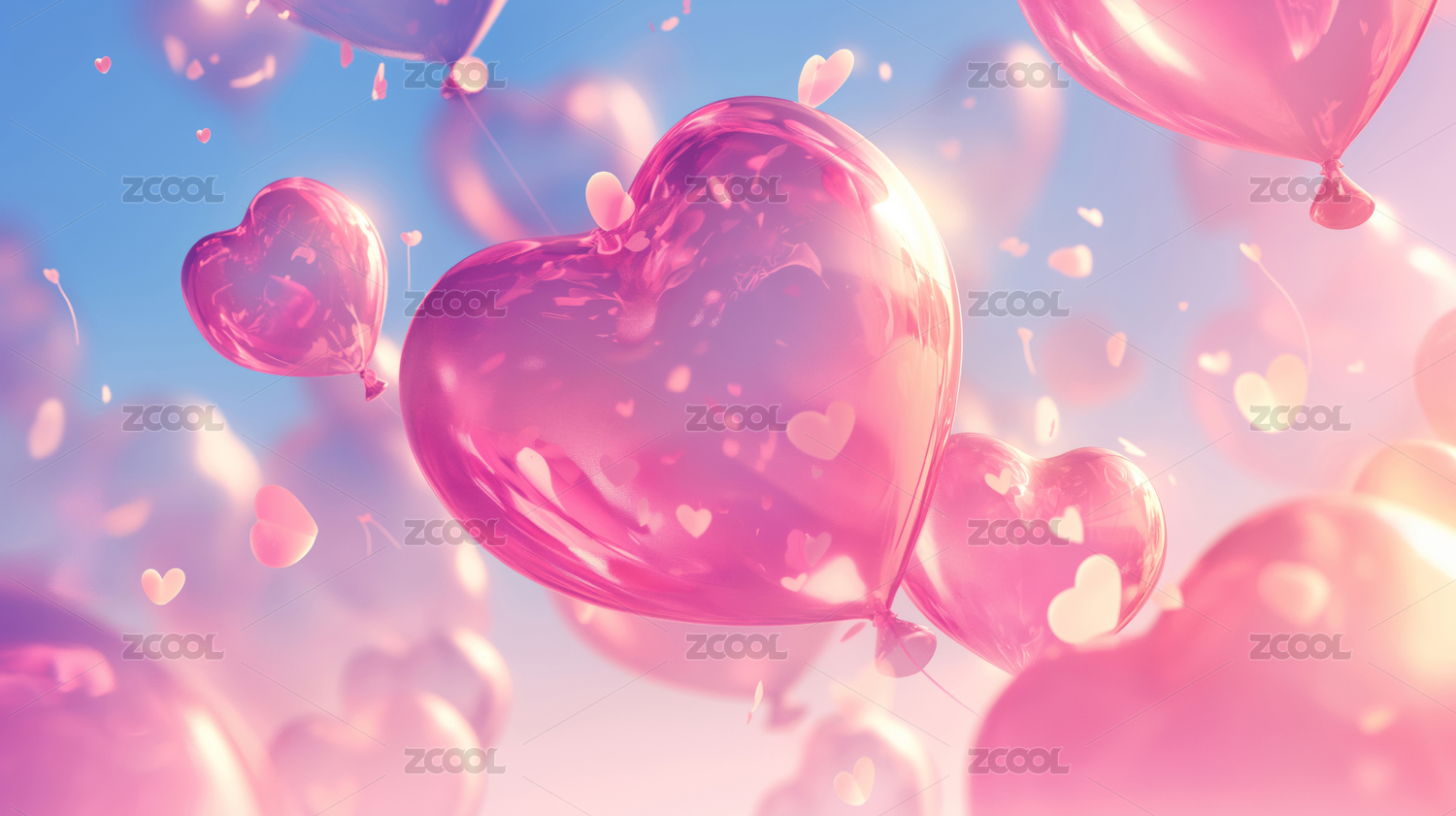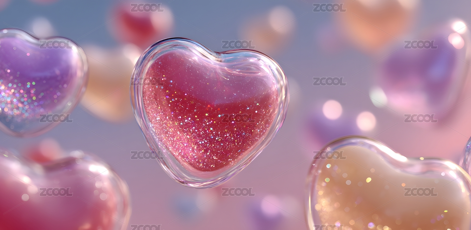 心形气泡梦幻背景,浪漫氛围柔和色彩