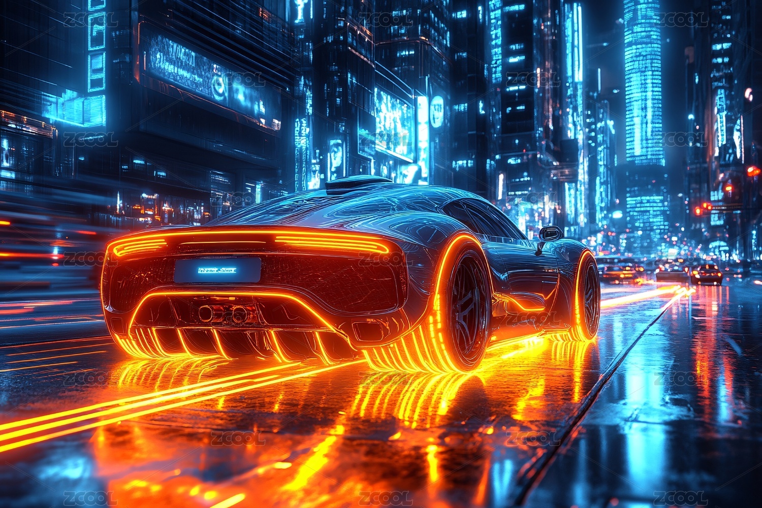 跑车,都市,疾驰,霓虹,光影,炫酷,未来,赛博,金属,反光