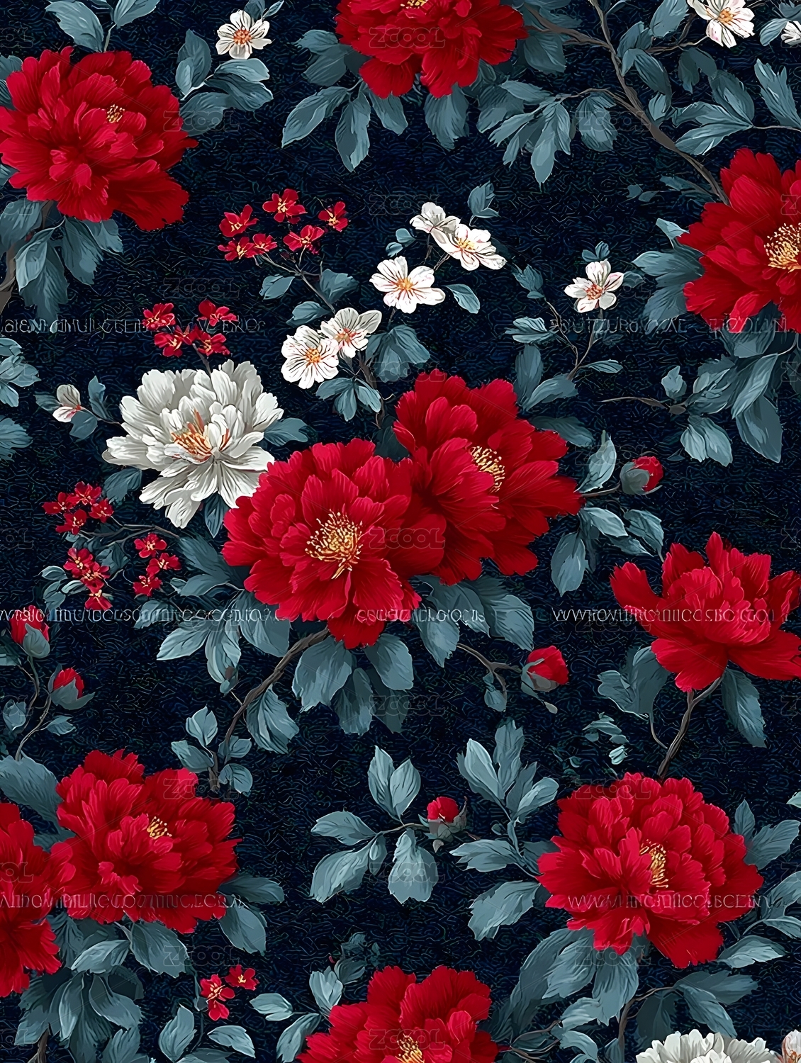 水墨牡丹盛开花卉中国风复古布料底纹图案