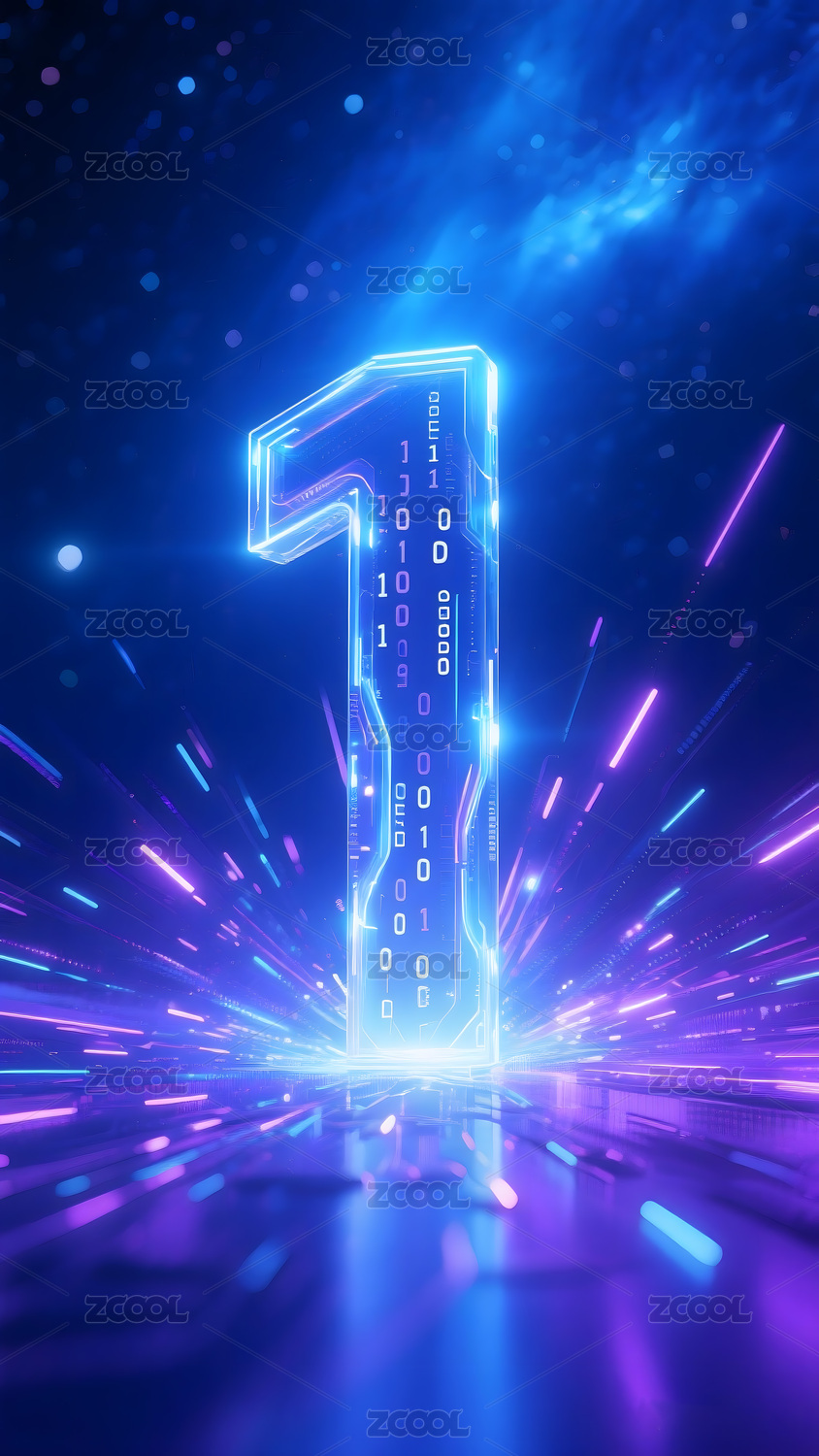 科技感,二进制,数据流,代码,人工智能,AI,AIGC,赛博朋克,蓝色,光效