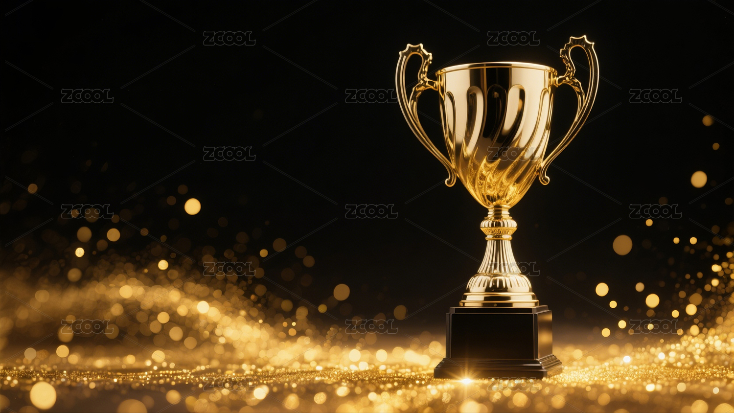 金色奖杯与飞舞金屑