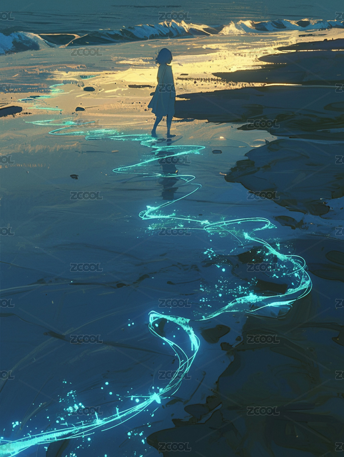 少女海边夜雨