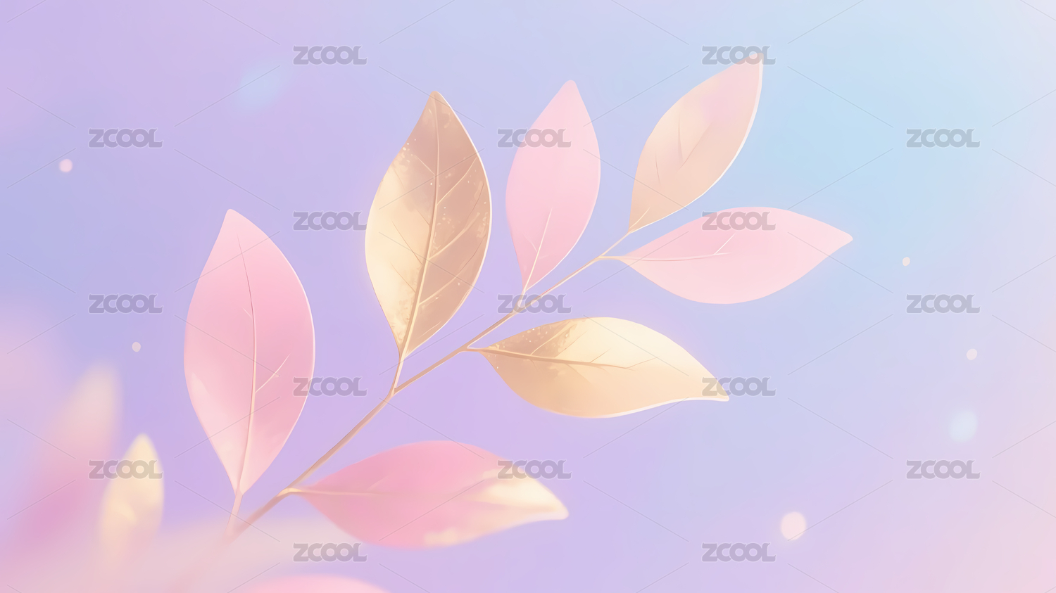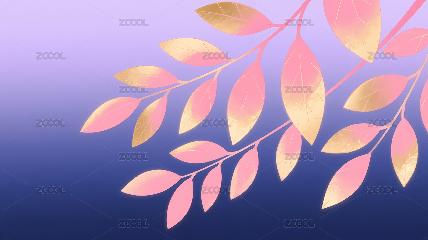 树叶,粉色,金色,树枝,紫色,蓝色,背景,渐变,鲜艳,柔和
