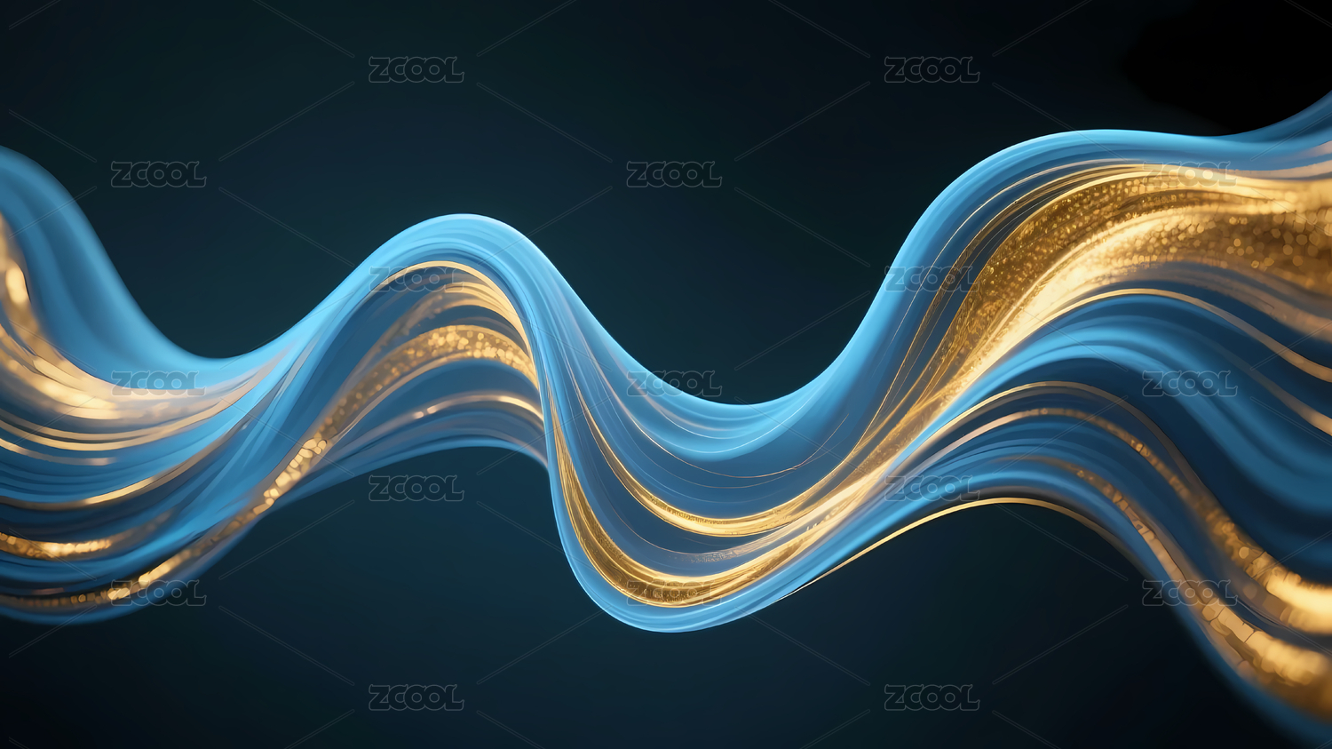蓝金交织波浪线条