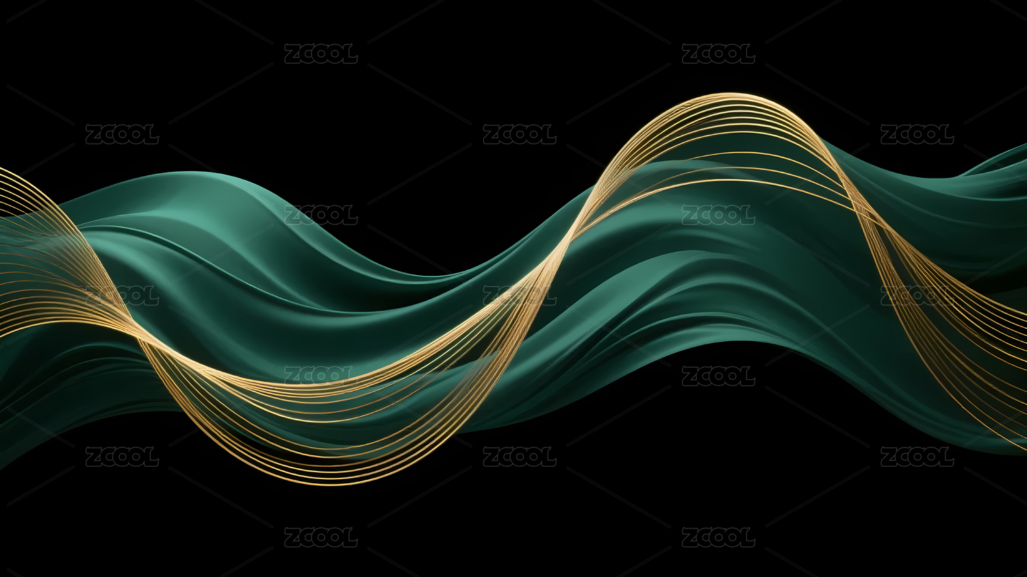 金色波浪与深绿色背景