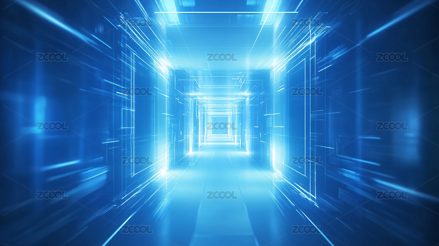 蓝色,背景,未来,走廊,白色,墙壁,科技,深色,霓虹,灯条