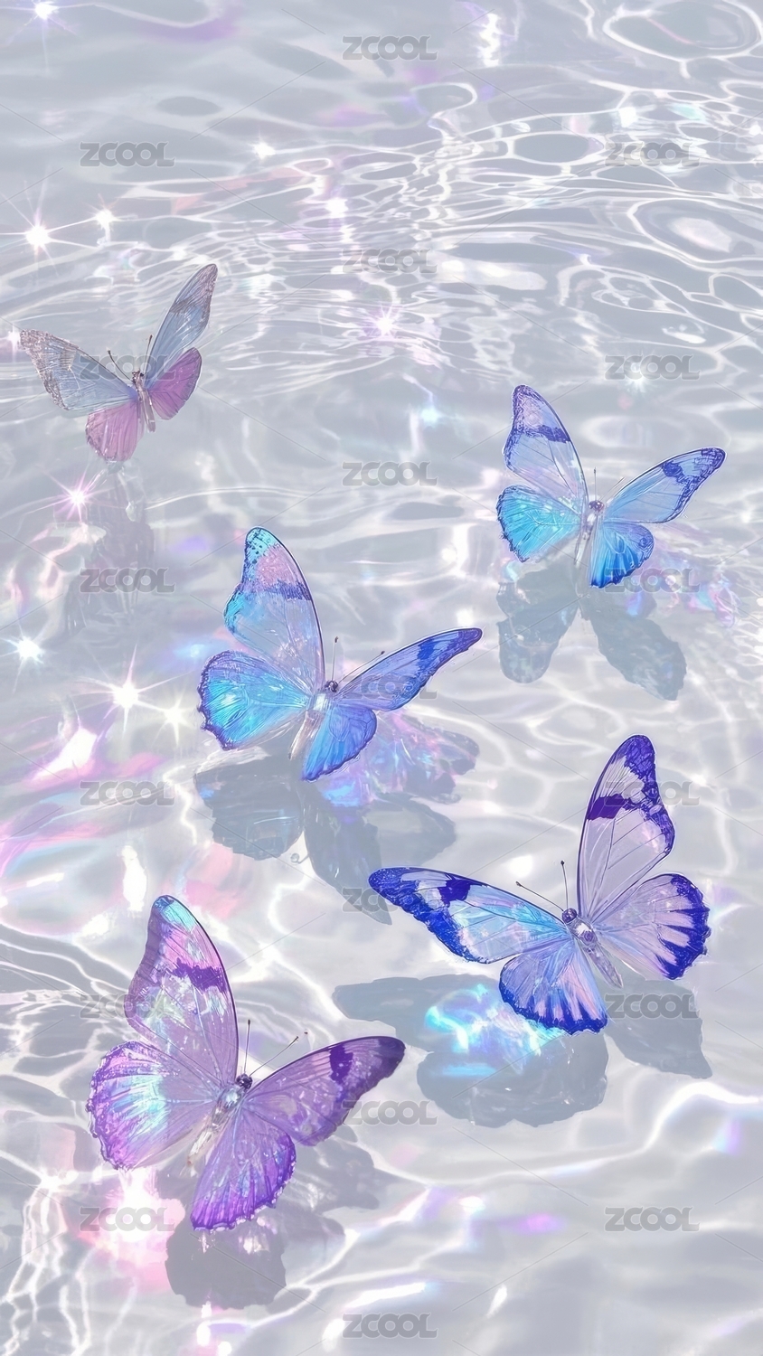 彩蝶水纹梦幻调自然场景
