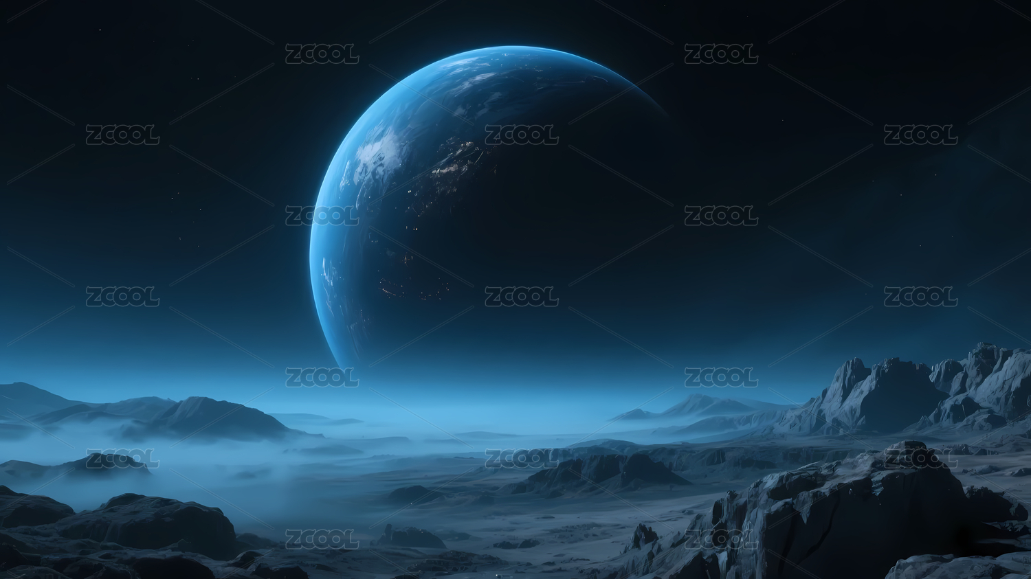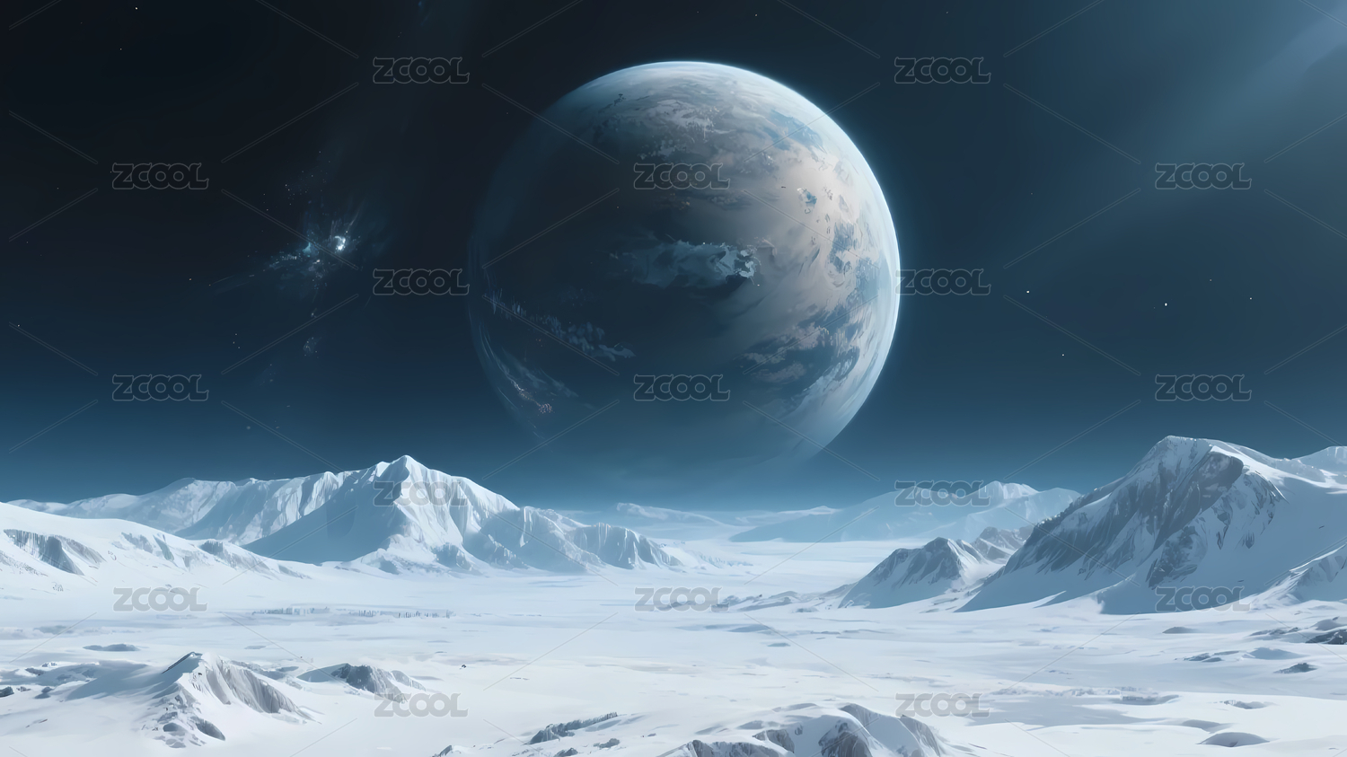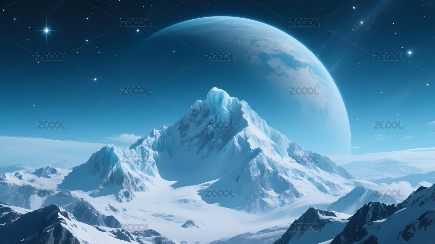 蓝色,背景,黑色,白色,神秘,星球,宇宙,雪山,深邃,壮丽