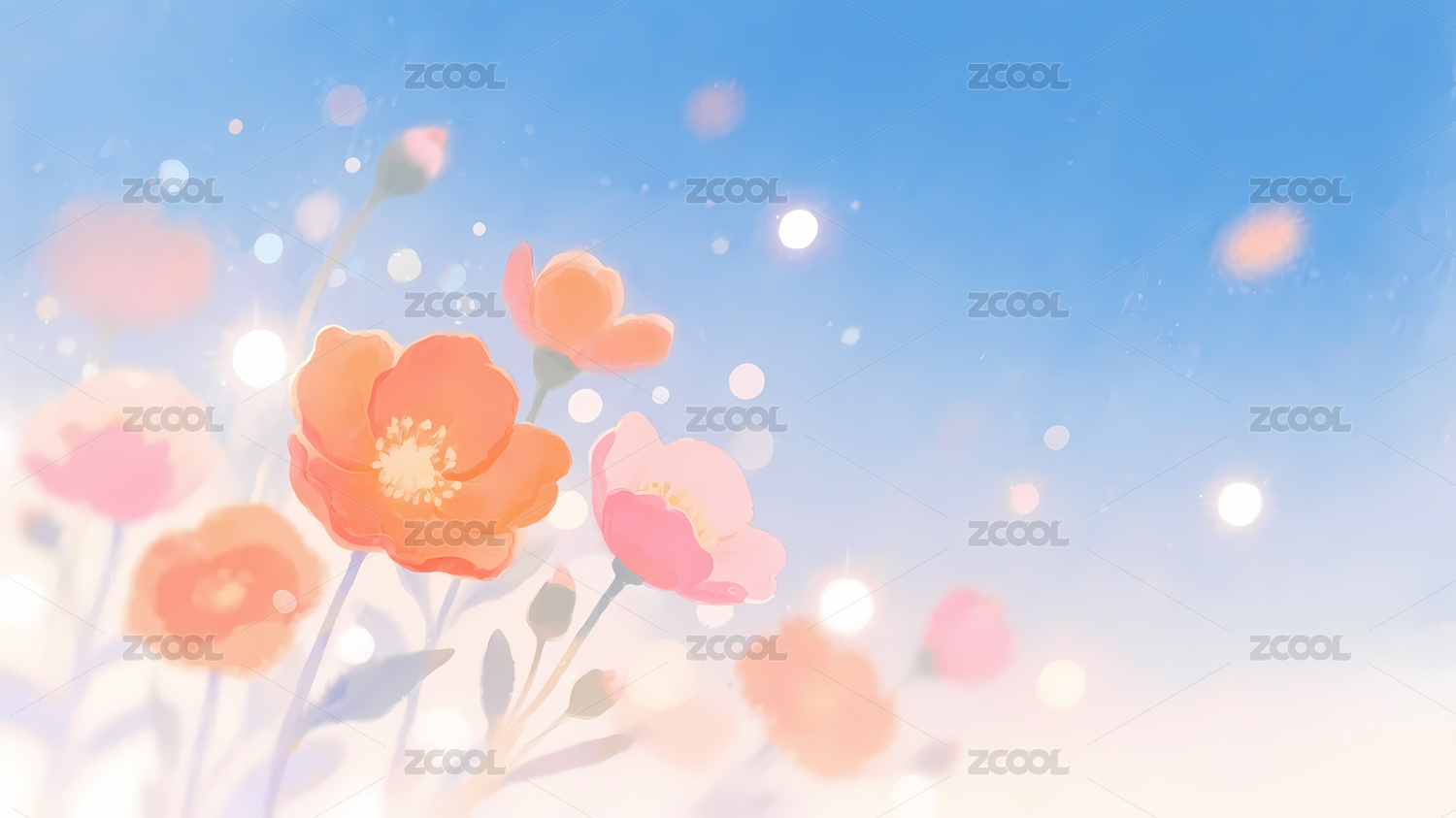 蓝色,背景,山脉,黄色,渐变,宁静,白色,花朵,柔和,光点