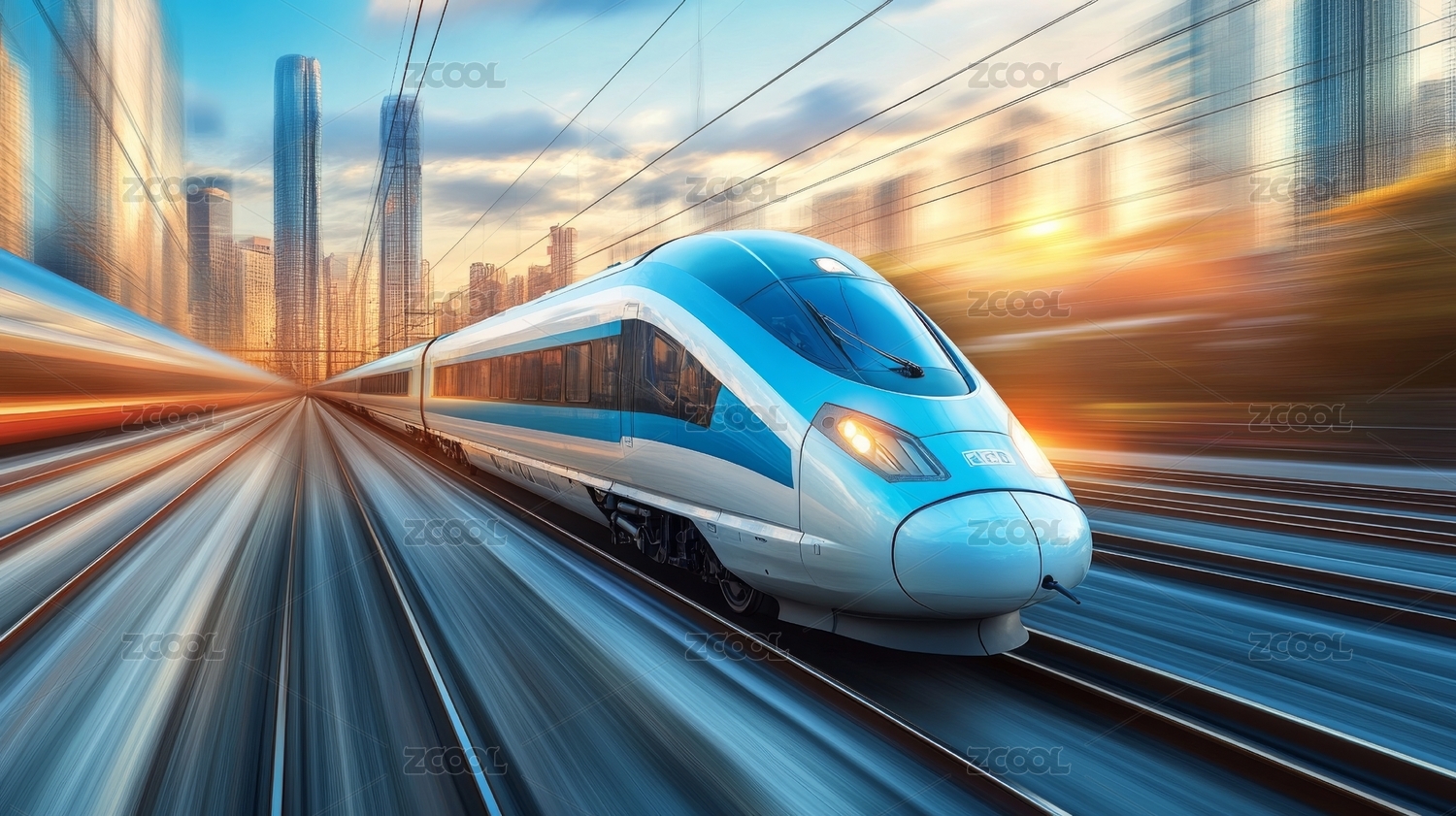 天空,模糊,高铁,列车,银色,行驶,日落,橙红色,铁轨,温暖