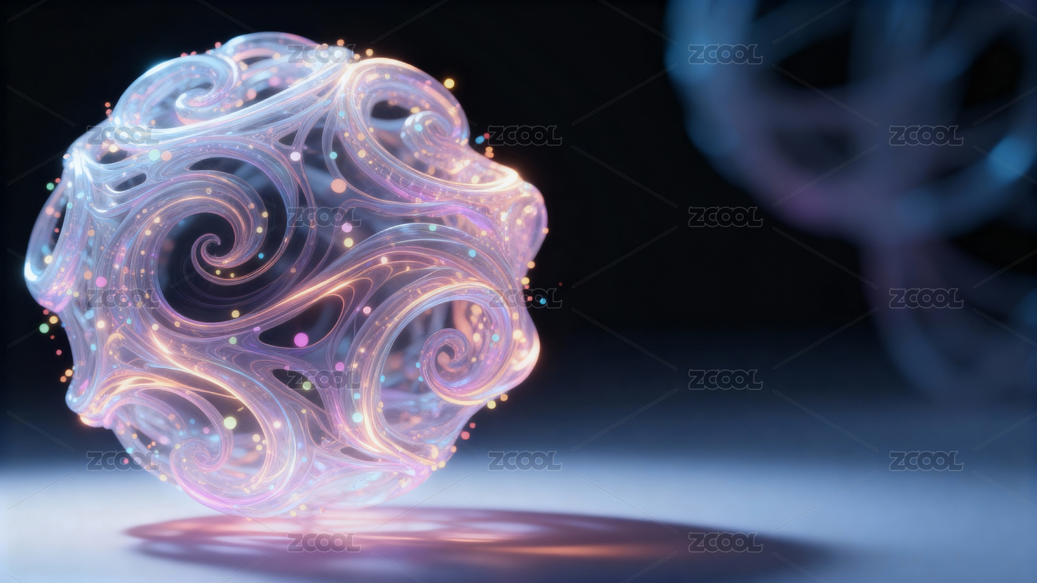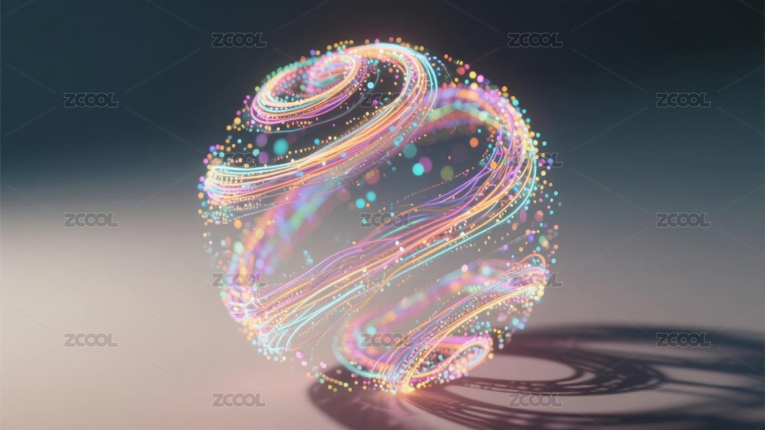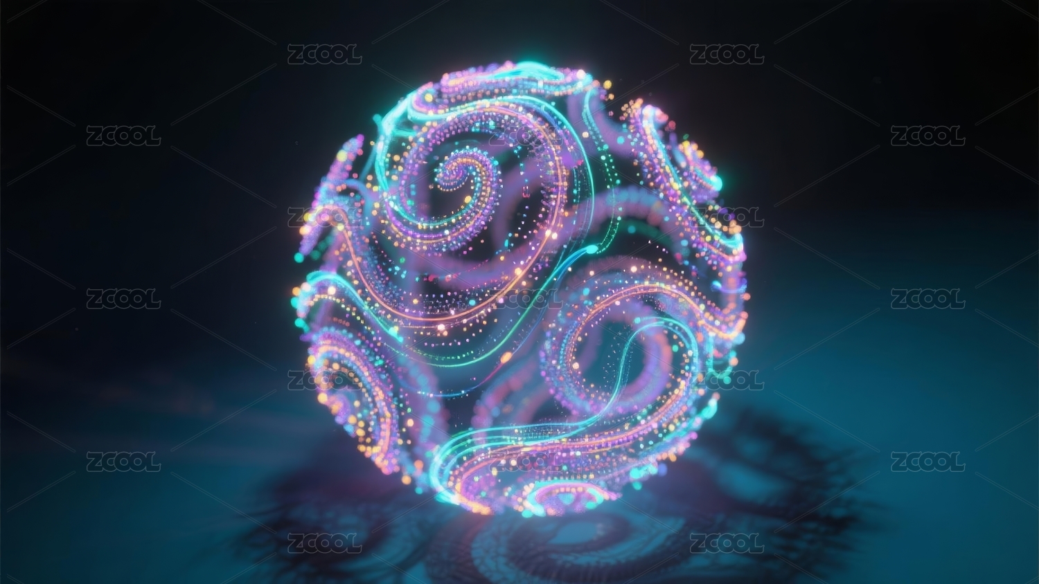 炫彩发光球体科幻艺术场景