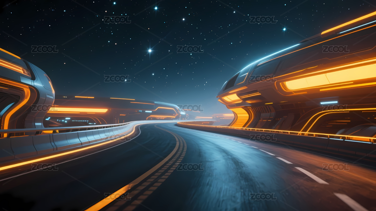 背景,橙色,未来,科技,视觉,黑色,夜晚,山脉,公路,高速