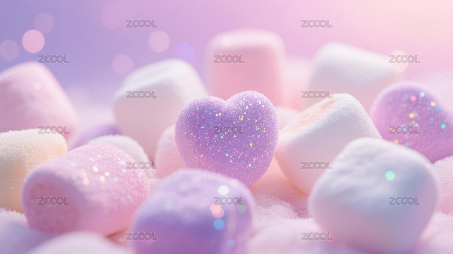 主视觉,场景,心形,糖果,色彩,甜品,展示,粉色,蓝色,白色