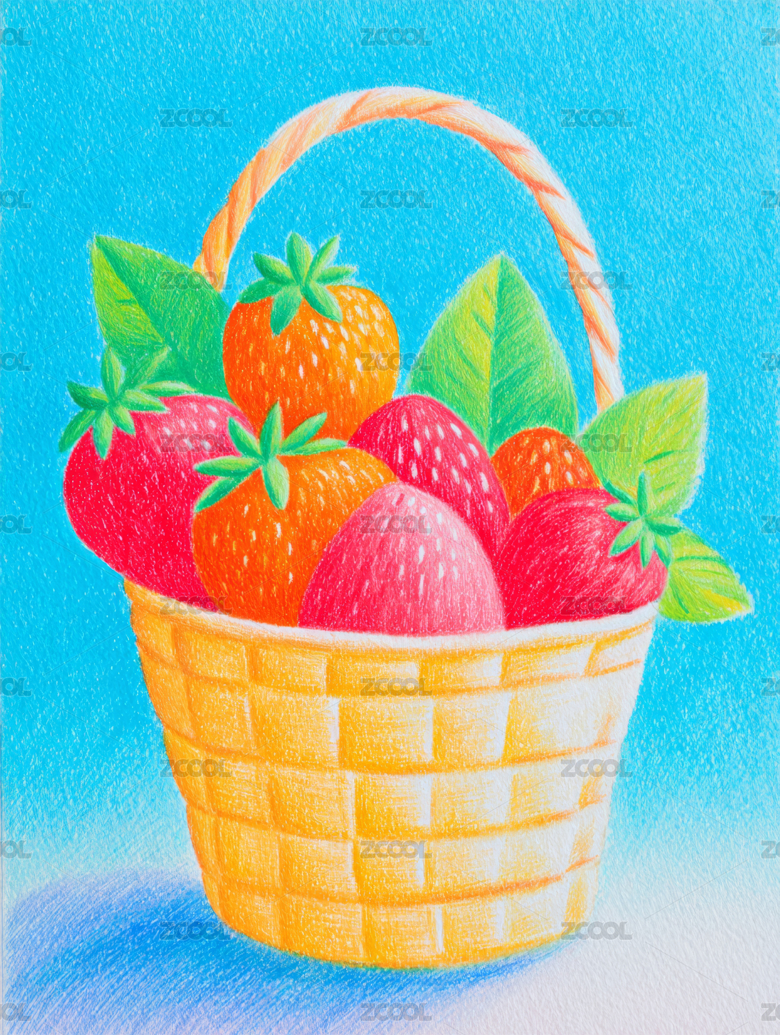 草莓,篮子,水果,绿色,叶子,编织,粉色,背景,蓝色,自然