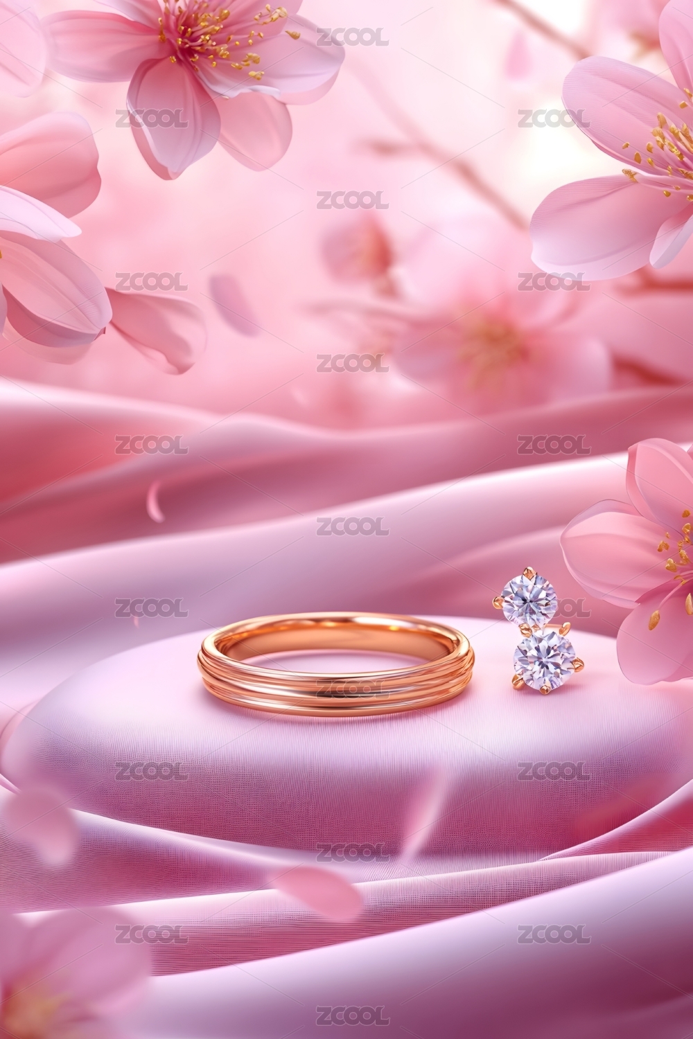 粉色戒指与樱花场景