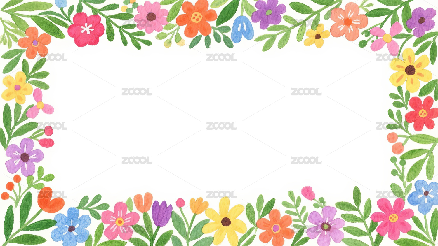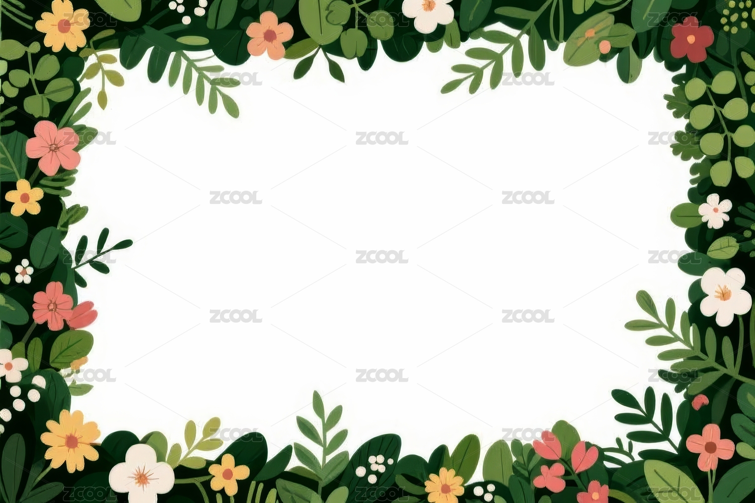 水彩画,水彩,卡通,花,留白,植物,自然,绿色,叶子,边框