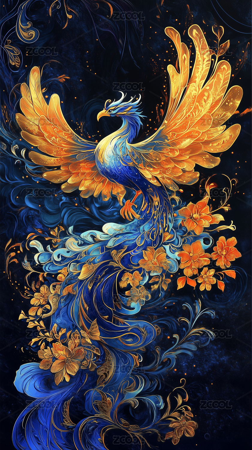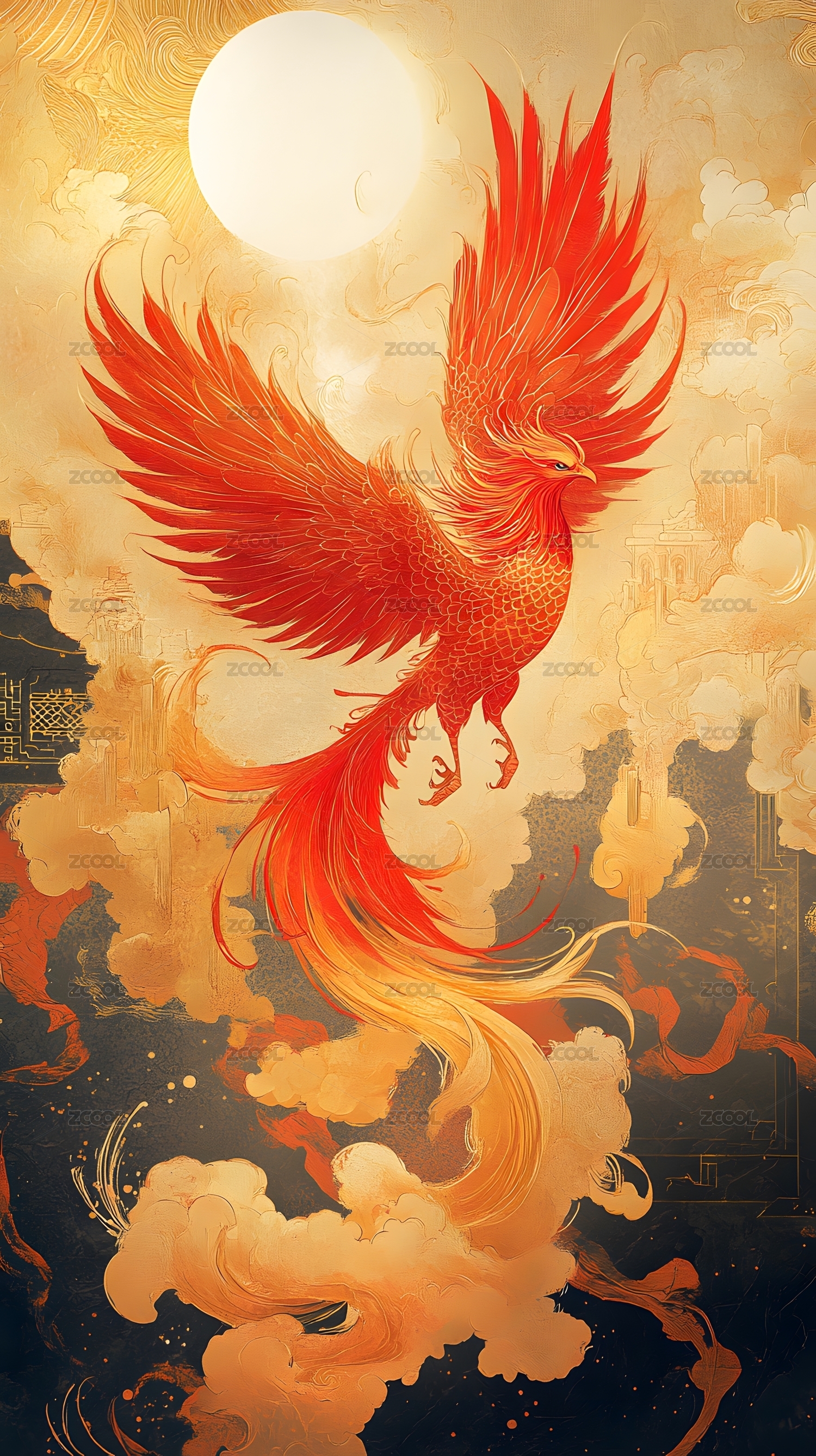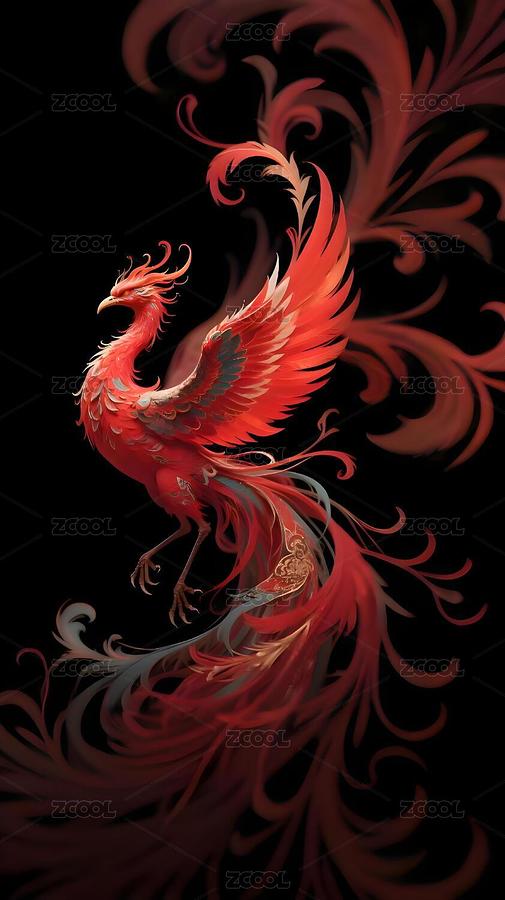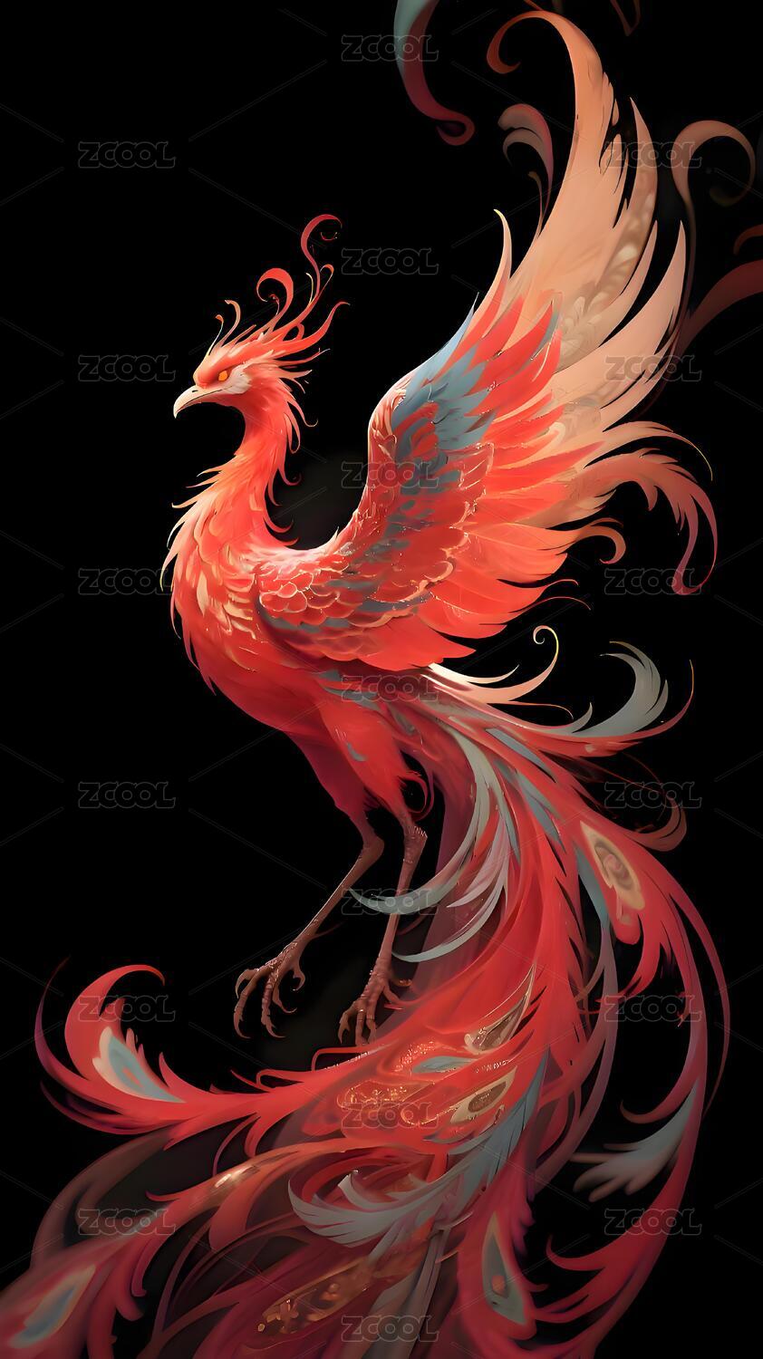 节日,传统,祝福,卡通,神话,动物,凤凰,朱雀,神鸟,鸟