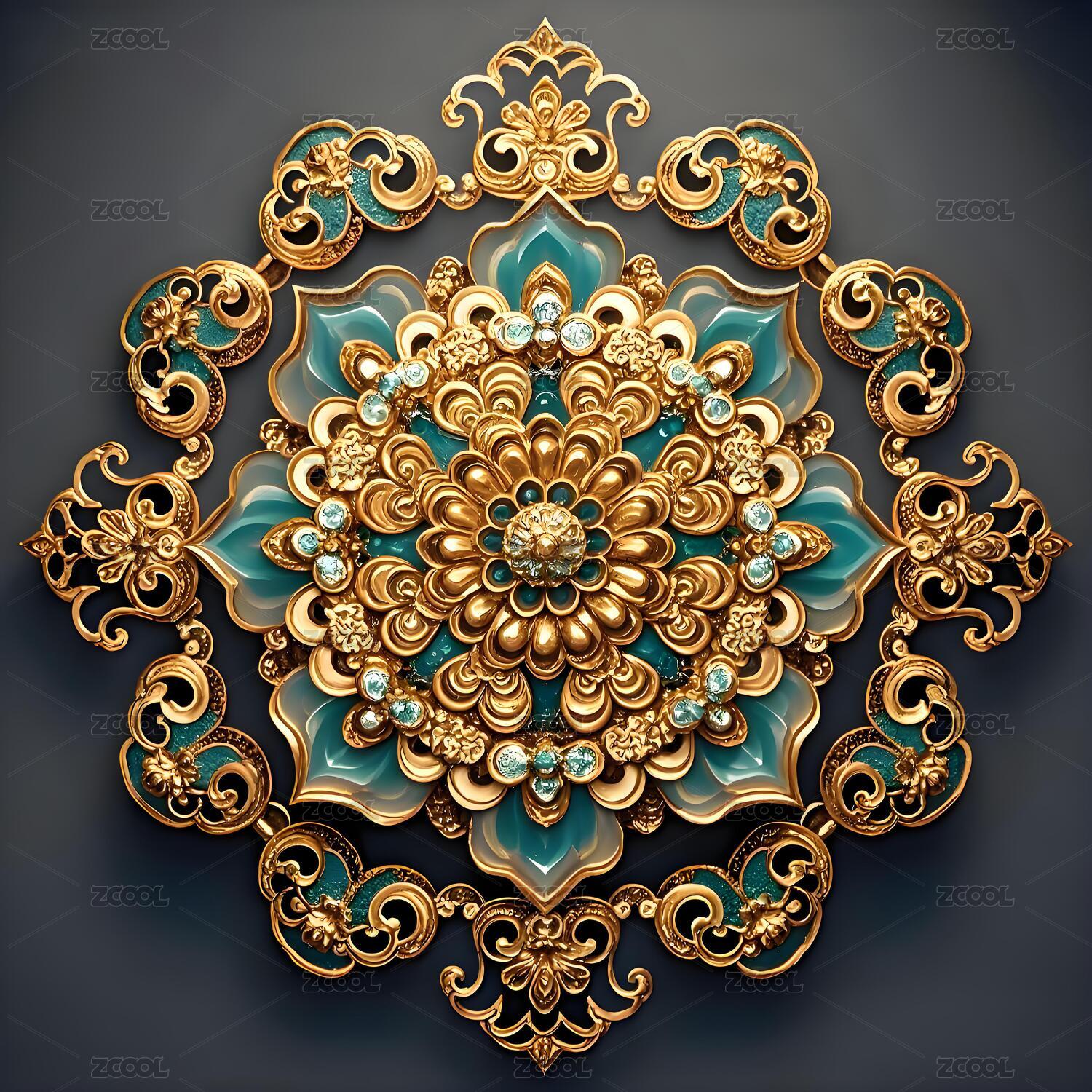 复古鎏金镶嵌宝石饰物纹样