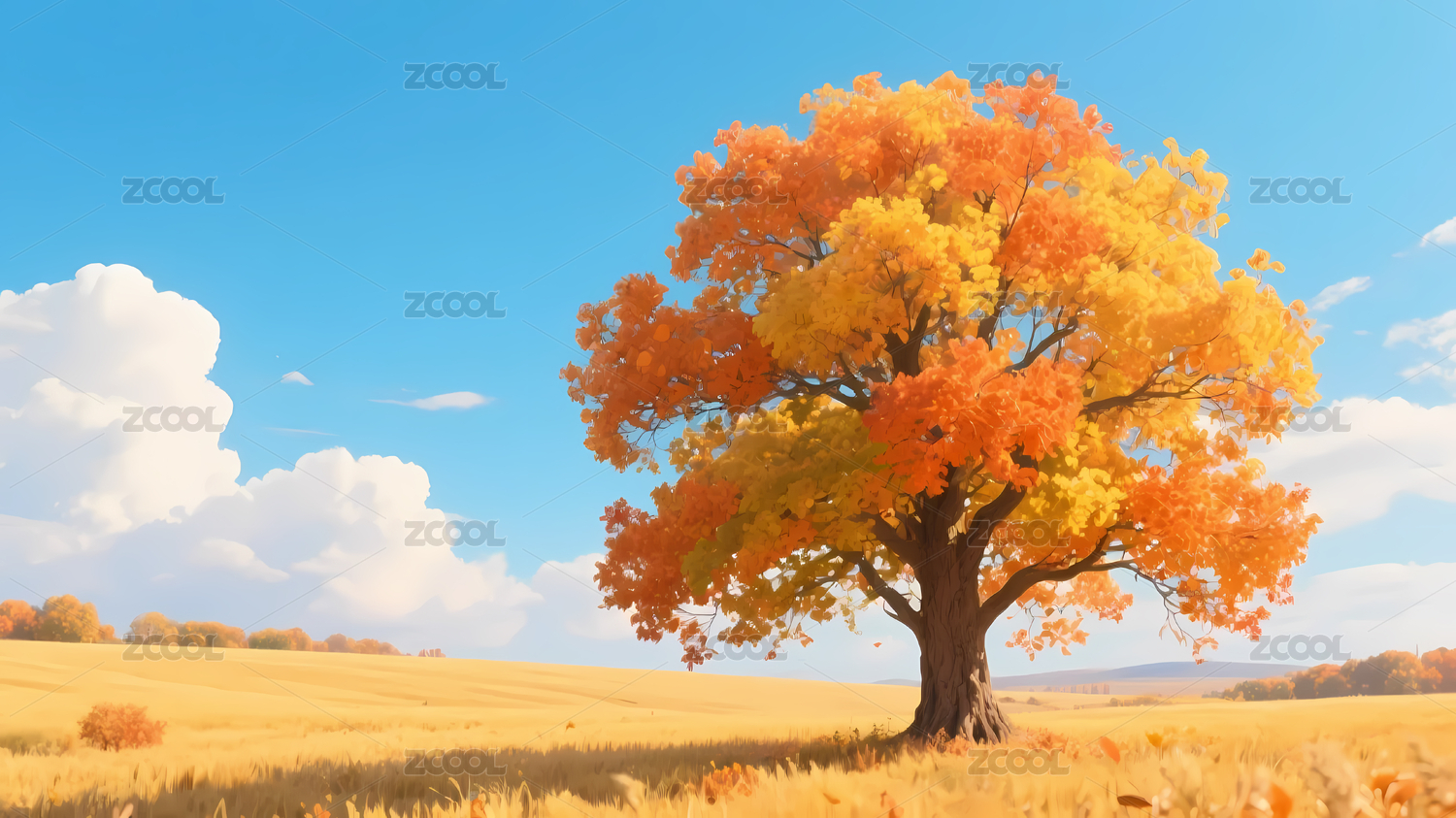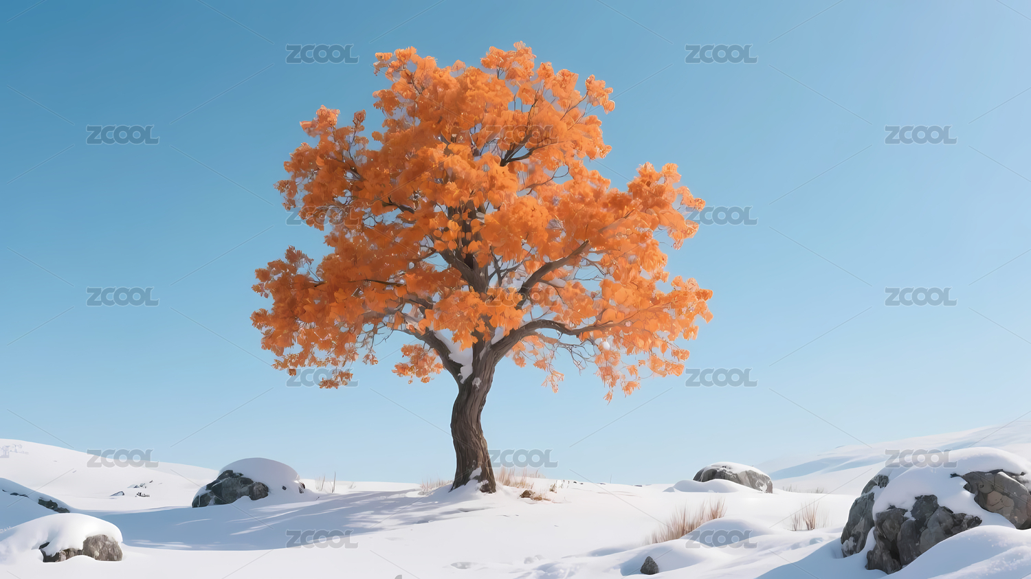 背景,橙色,自然,蓝天,白云,色调,雪山,远处,树,景色