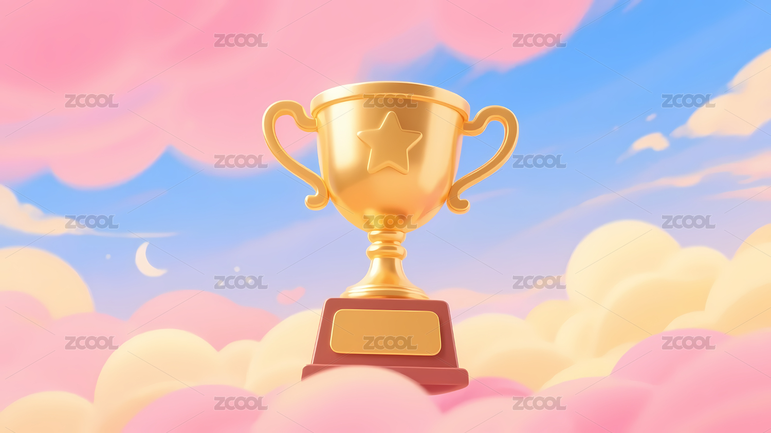 金色,背景,天空,蓝色,粉色,云朵,柔和,星星,奖杯,月亮