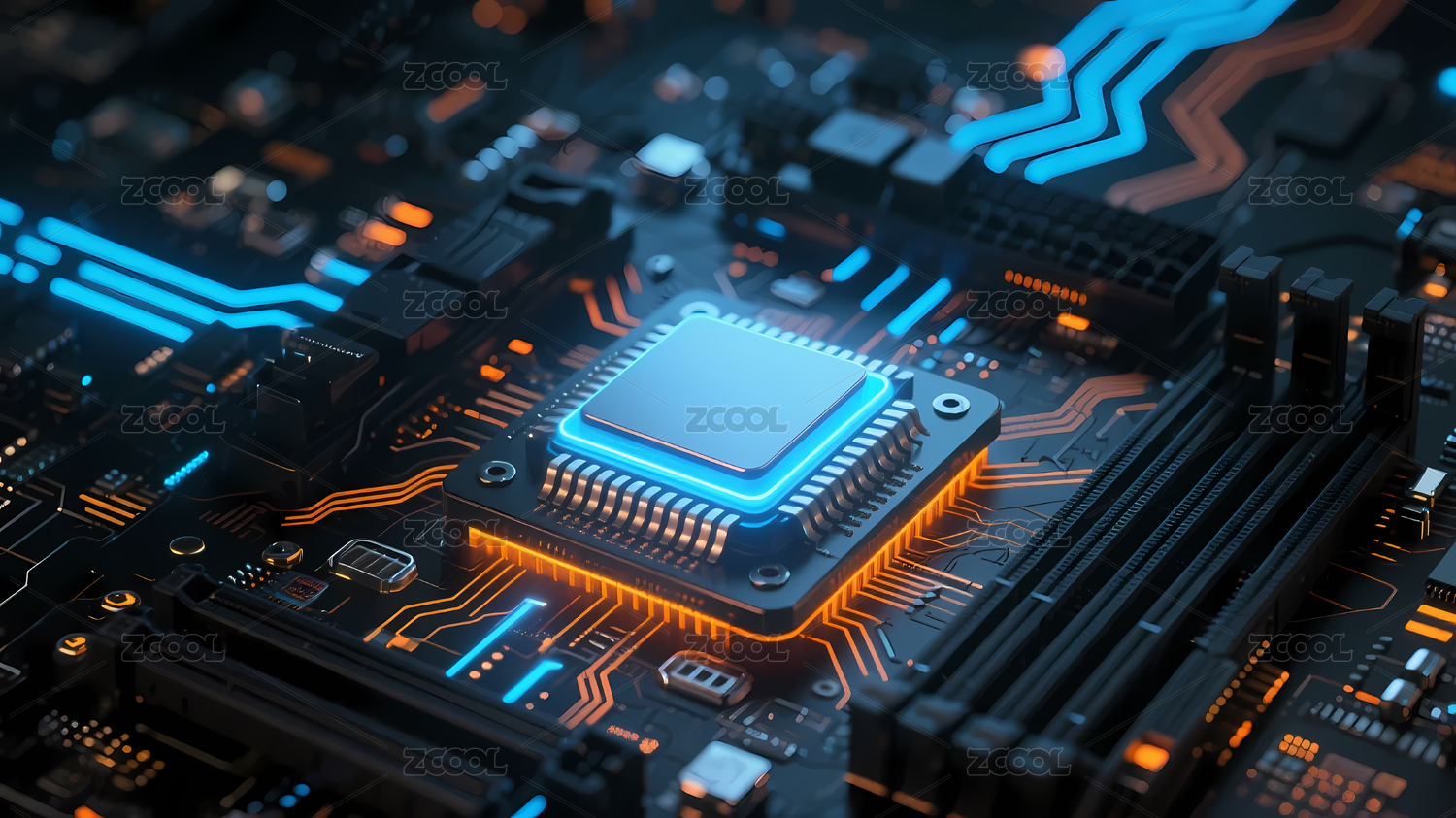 发光,背景,橙色,深色,未来,蓝色,电路板,线条,中央处理器,高科技